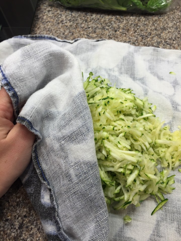 Put the gratings in a clean tea towel and squeeze as much moisture out as you can
