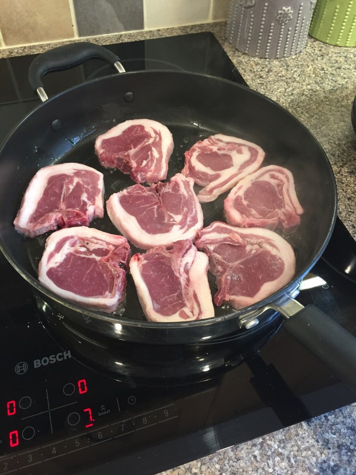 Heat a little oil in a frying pan and fry the chops for a couple of minutes either side to seal them