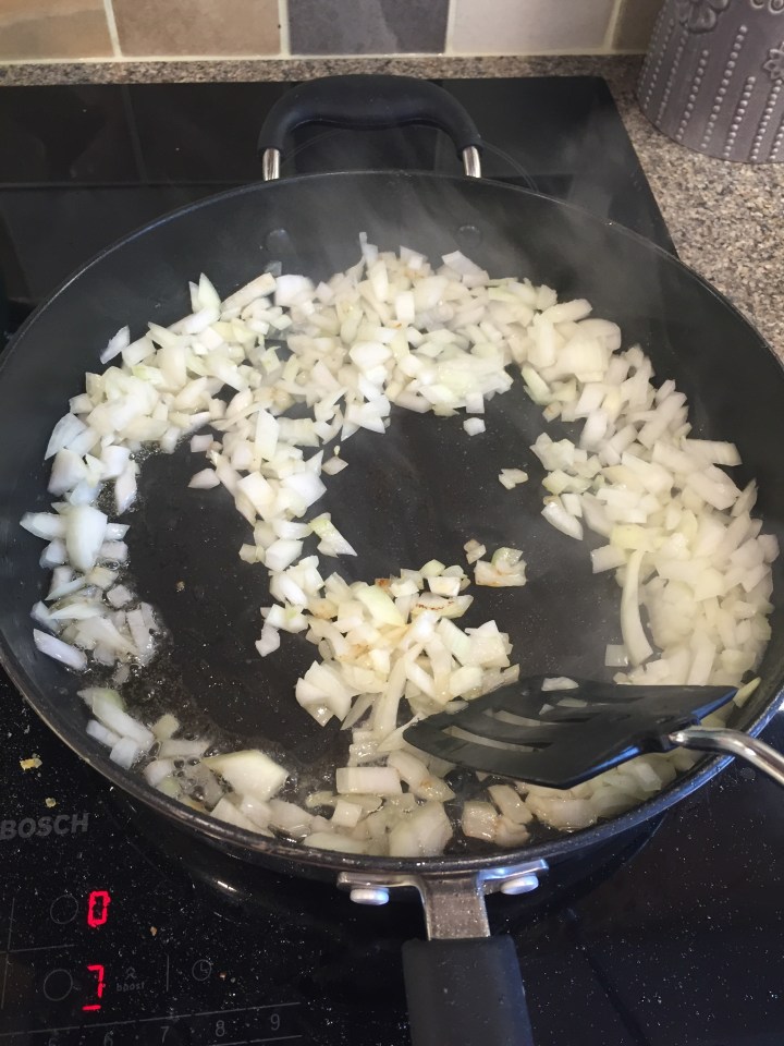 In the same pan (with the lamby oil) fry the onions on a medium-low heat for 5-10mins.