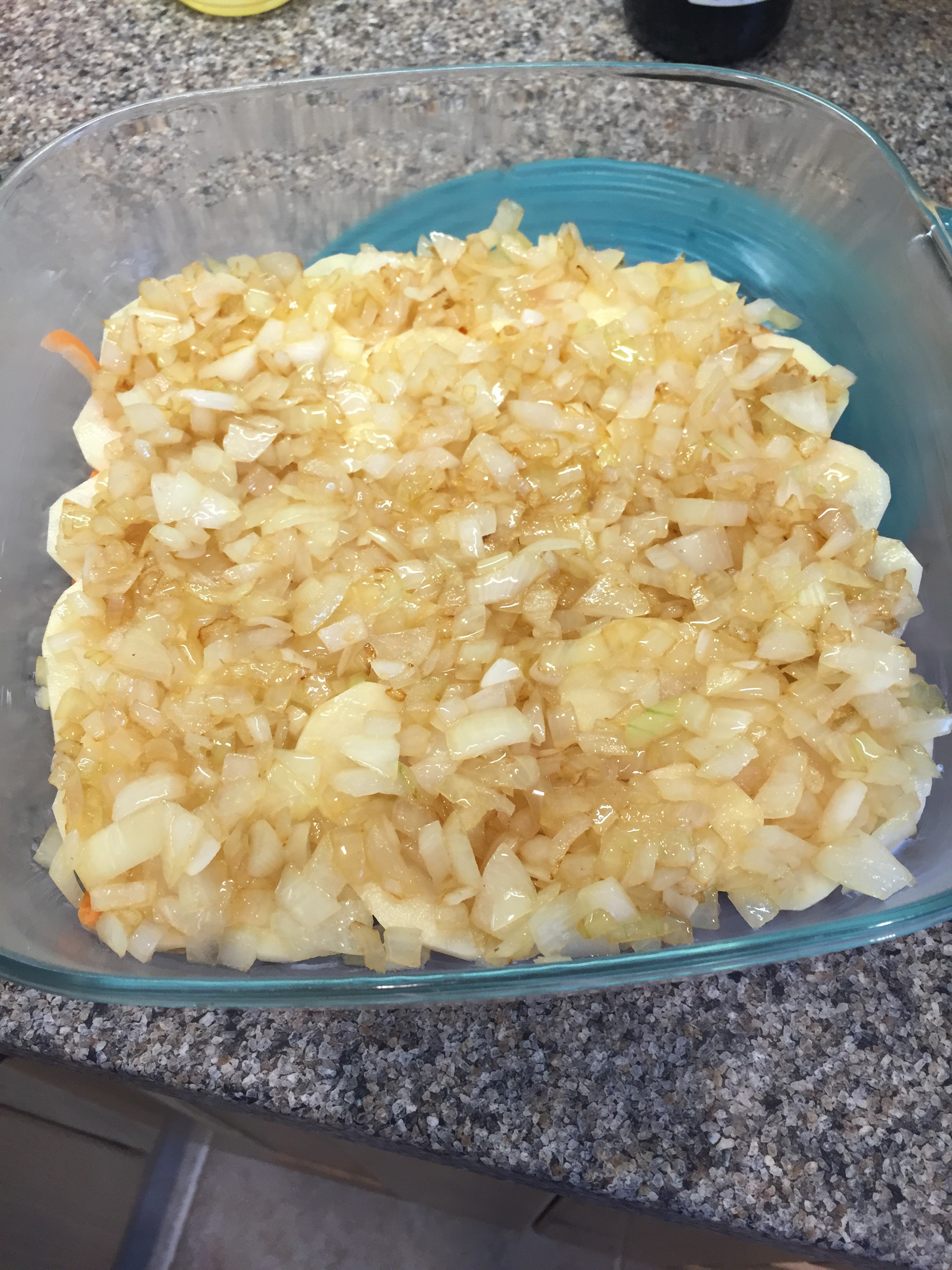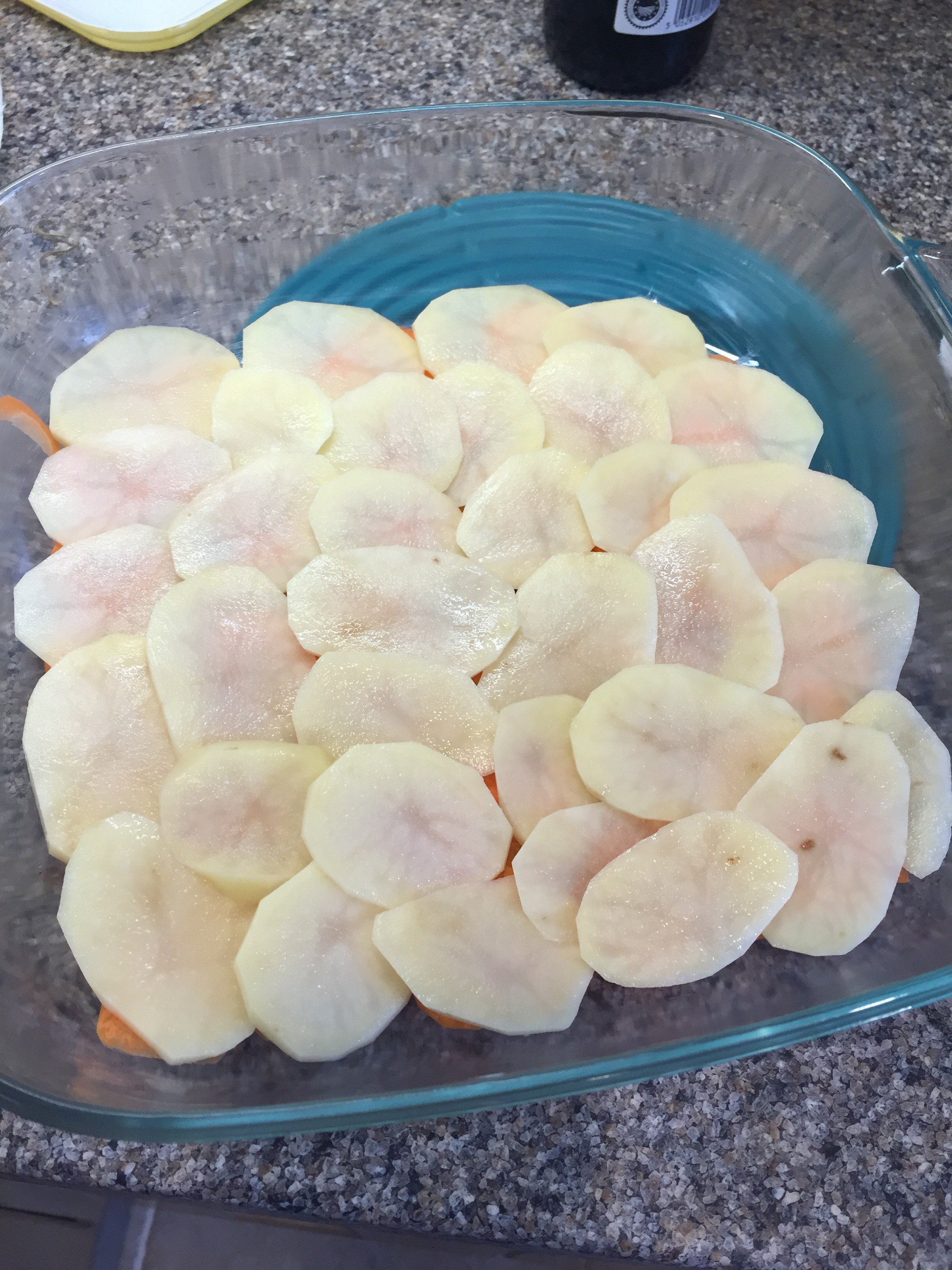 After the parsley do a potato layer followed by a carrot layer and finally one more potato layer.