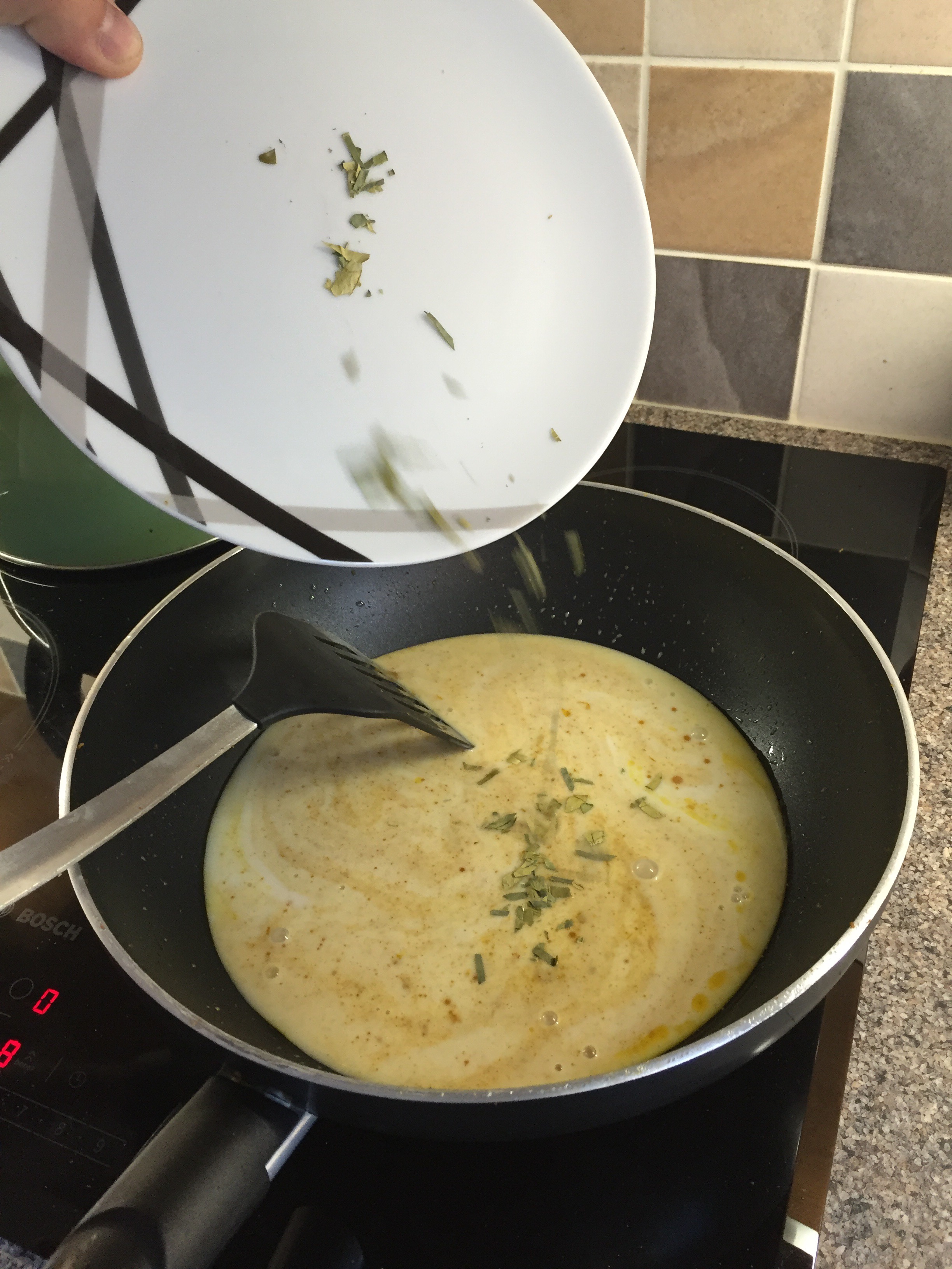 Throw in the veg and continue cooking for 5mins. If you’re serving to babies you will want to cook it longer for them so the veg softens completely. Toddlers can manage al-dente veg.
