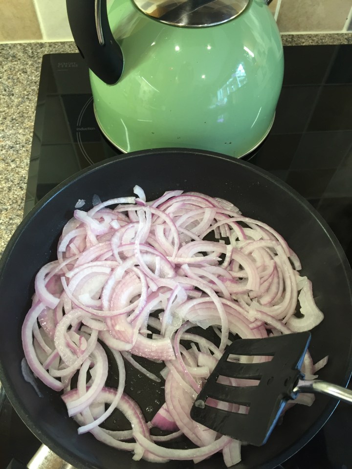 Heat a tablespoon of oil in a pan and fry the onions on a medium heat for around 5mins