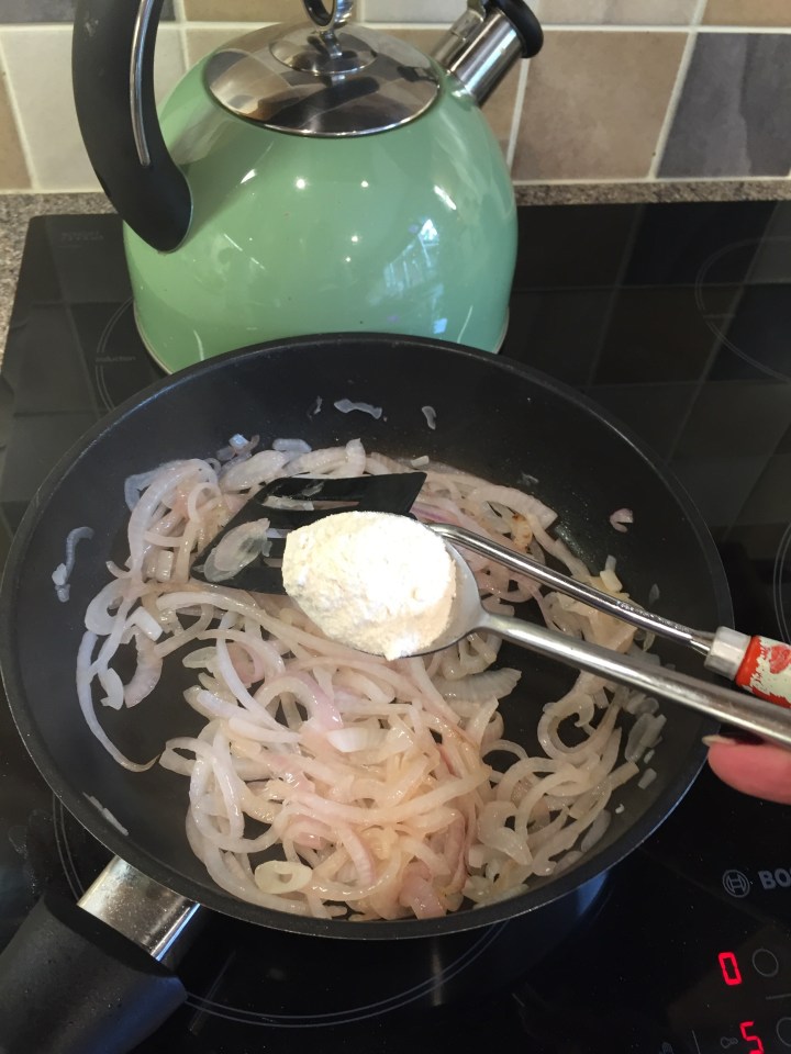 Add a tablespoon of flour and some salt & pepper and cook for another 2mins