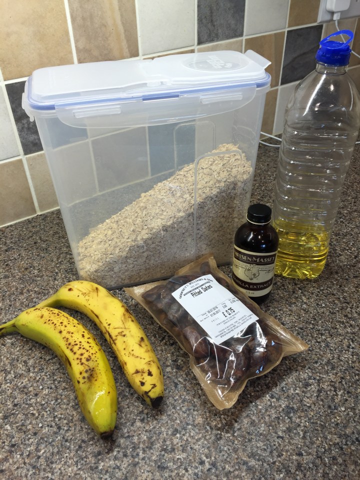 Add the dates and 50ml of oil into the bowl with the bananas