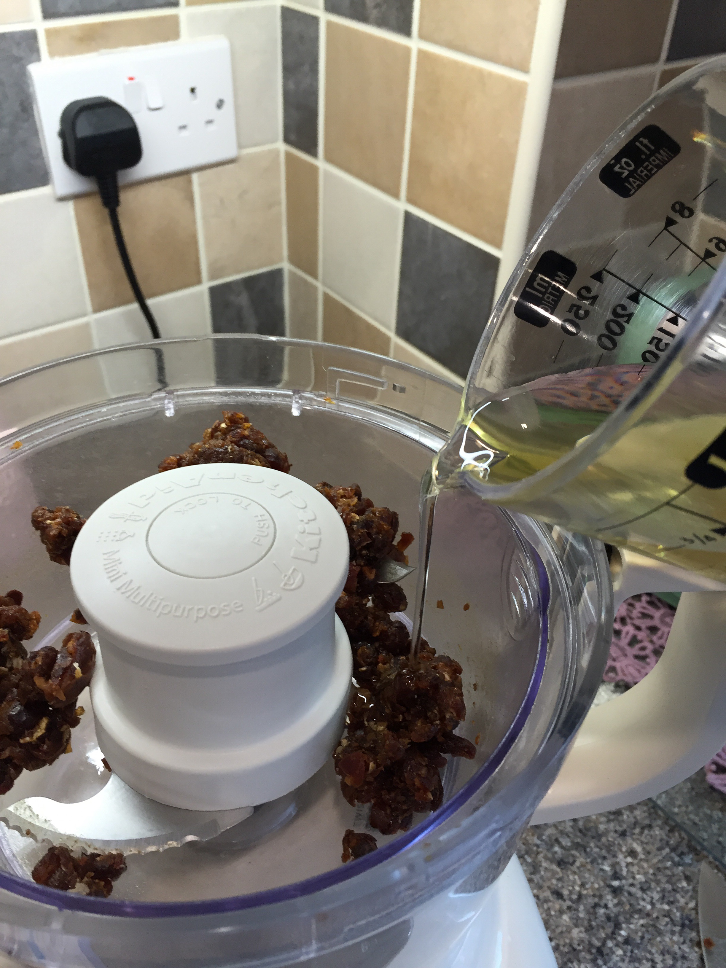 Ignore the food processor- just chop the dates! I tried to make them into more of a paste but it didn’t work so I ended up chopping them instead! Chop them as small as you can.