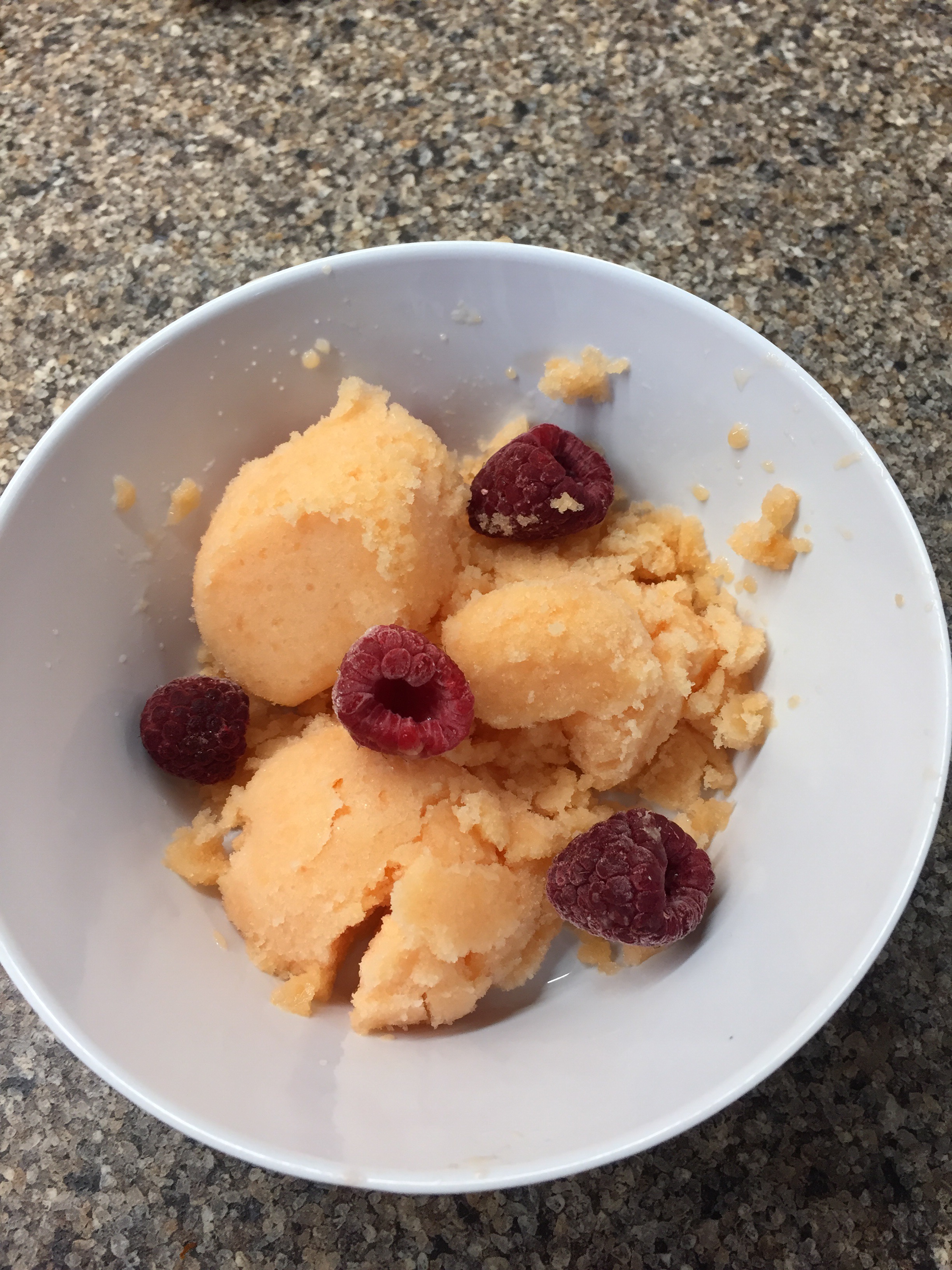 This is a really easy one to do and tastes great. I did find it best eaten straight after making it as it went a bit too hard after refreezing it. That being said- my toddler was still pretty happy with it when it turned into a snowcone type dessert rather than a sorbet after a week in the freezer!