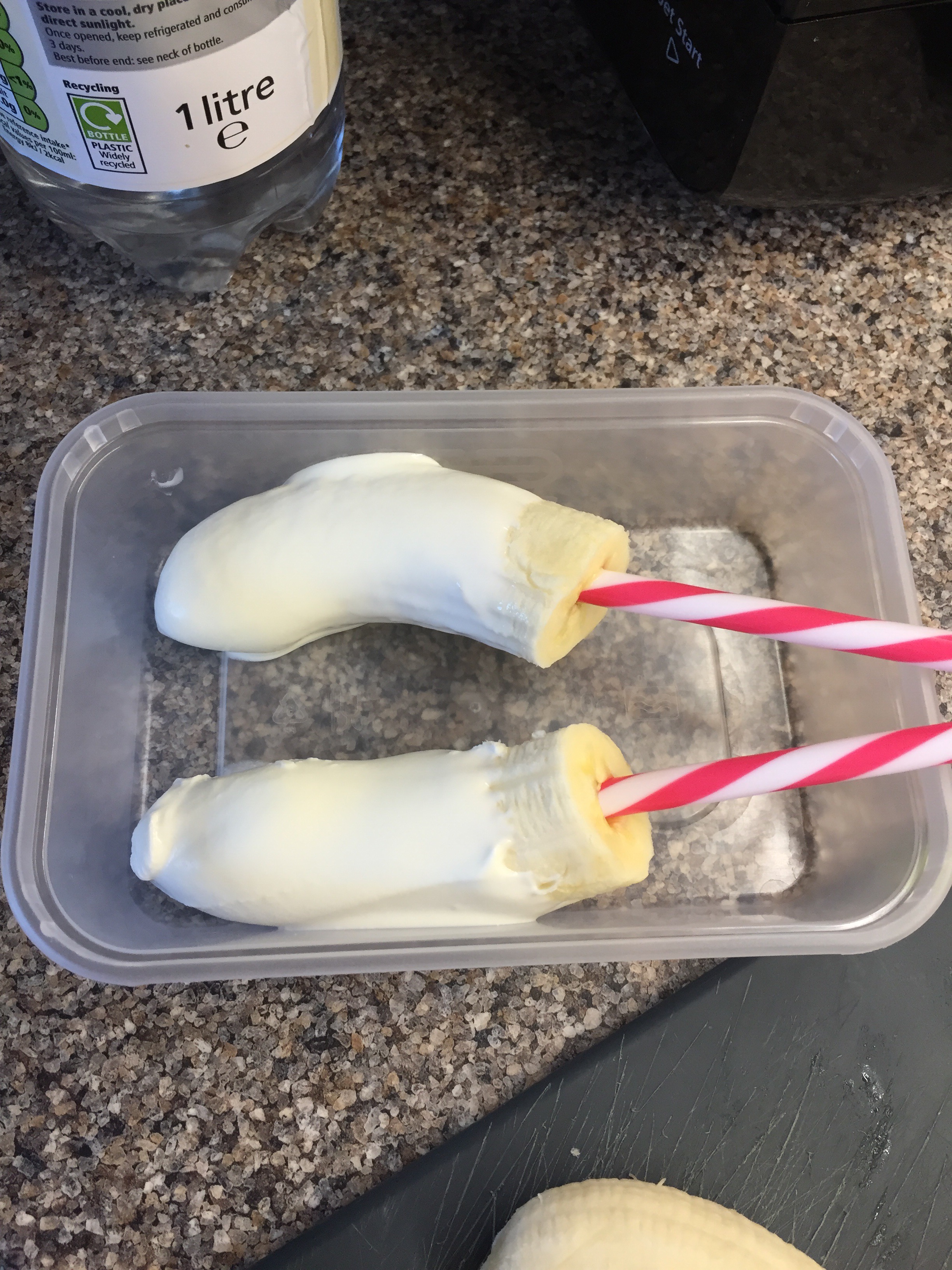 Dip into the yoghurt to cover it. Now if you want to be a little naughtier you can use chocolate here, or swirl some jam or honey into the yoghurt- we went with pure yoghurt first as I wanted to see if she actually needed it any sweeter before presuming she did. Turns out she was happy with it as is!
