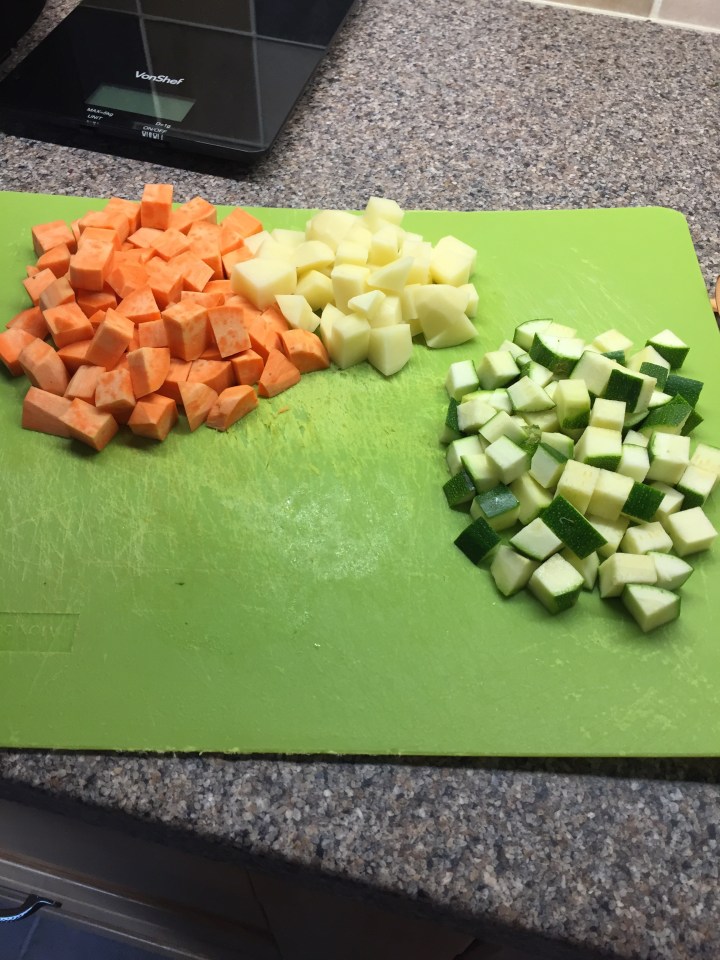 You can use this base and add whatever veg you have left in the house. I had sweet potato and courgette so that’s what I used!
