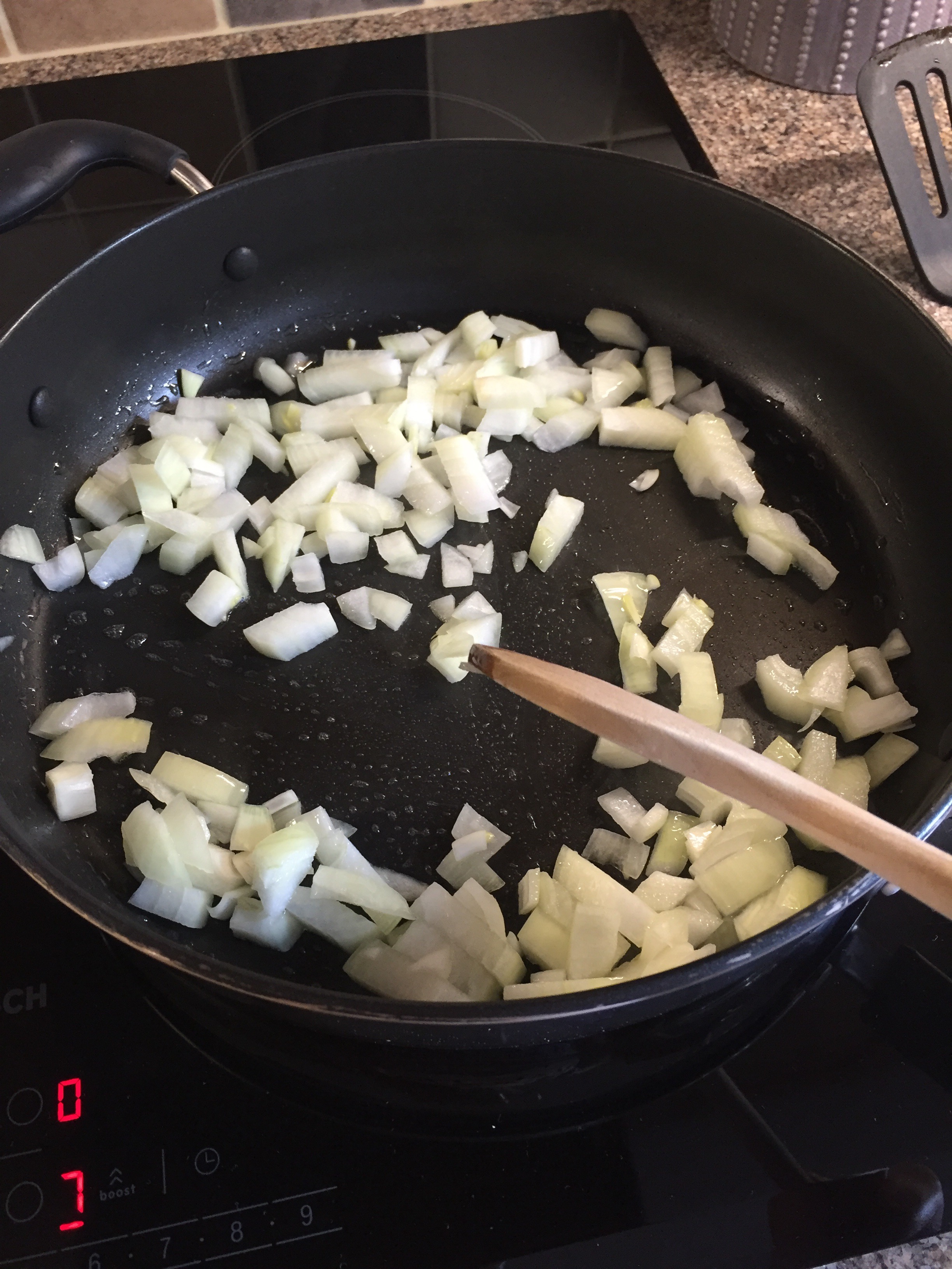 Dice the onions and cook on a medium heat in a tablespoon of vegetable oil