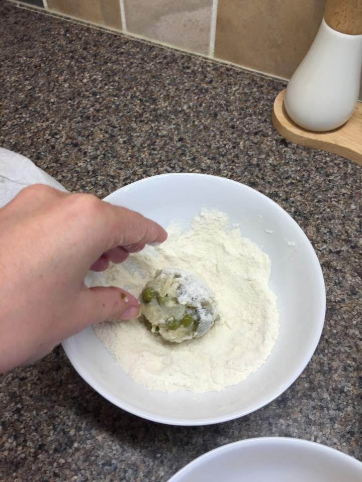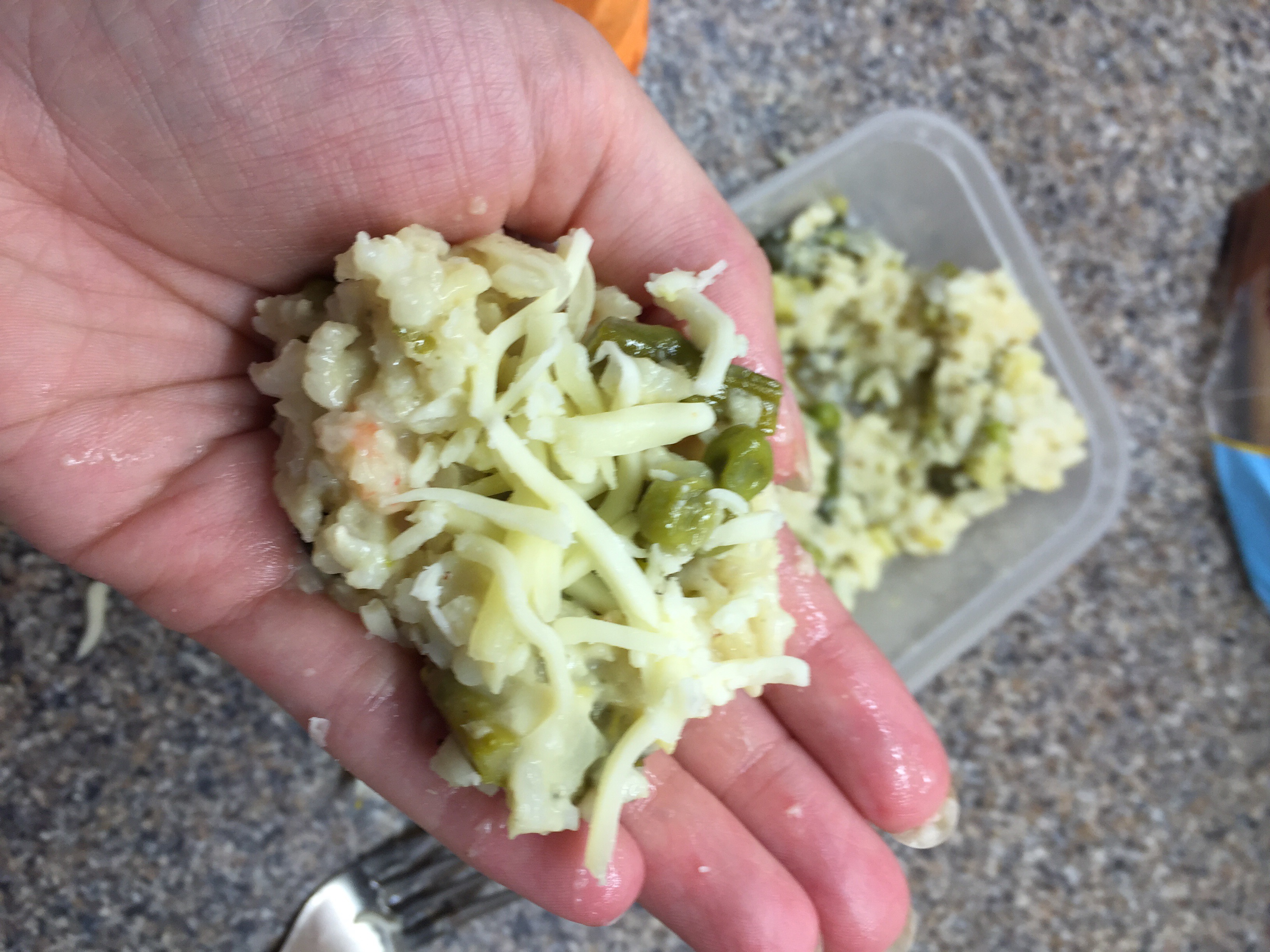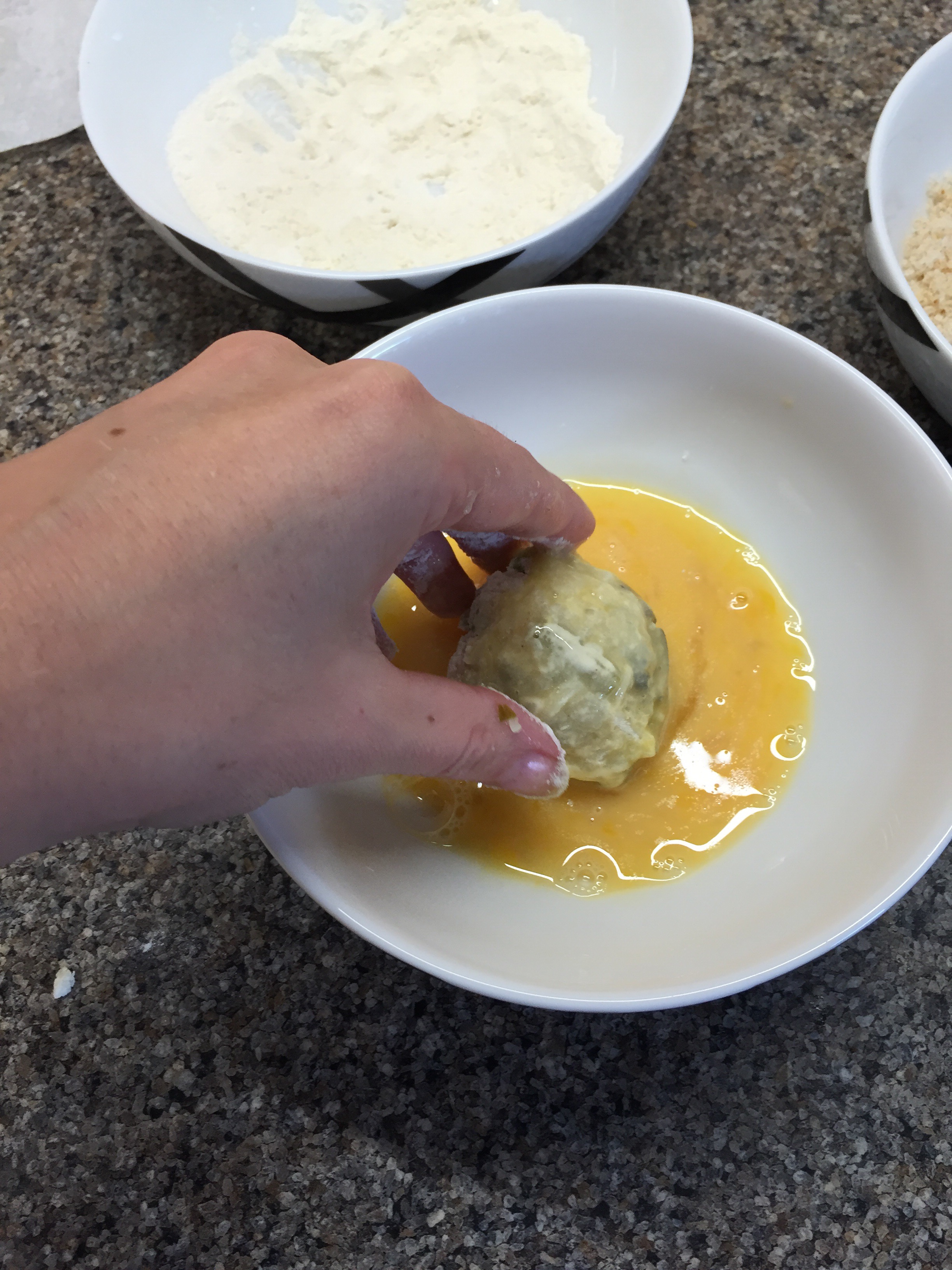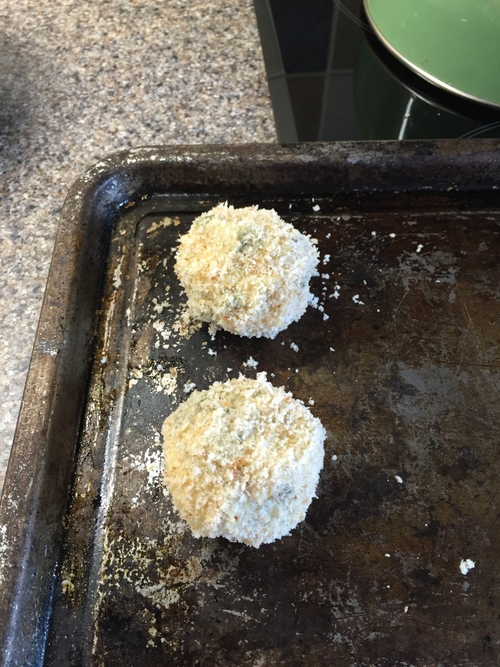 Grab a handful of risotto and attempt to stuff some mozzarella in the middle (I had mixed success with doing this part!)