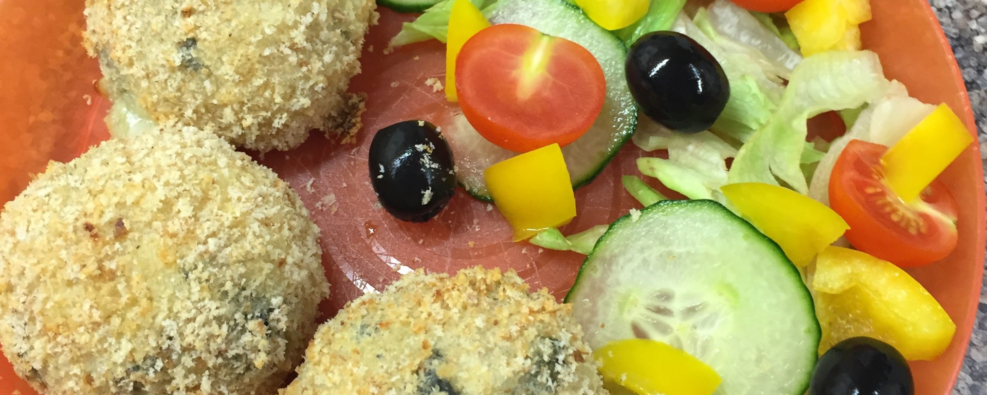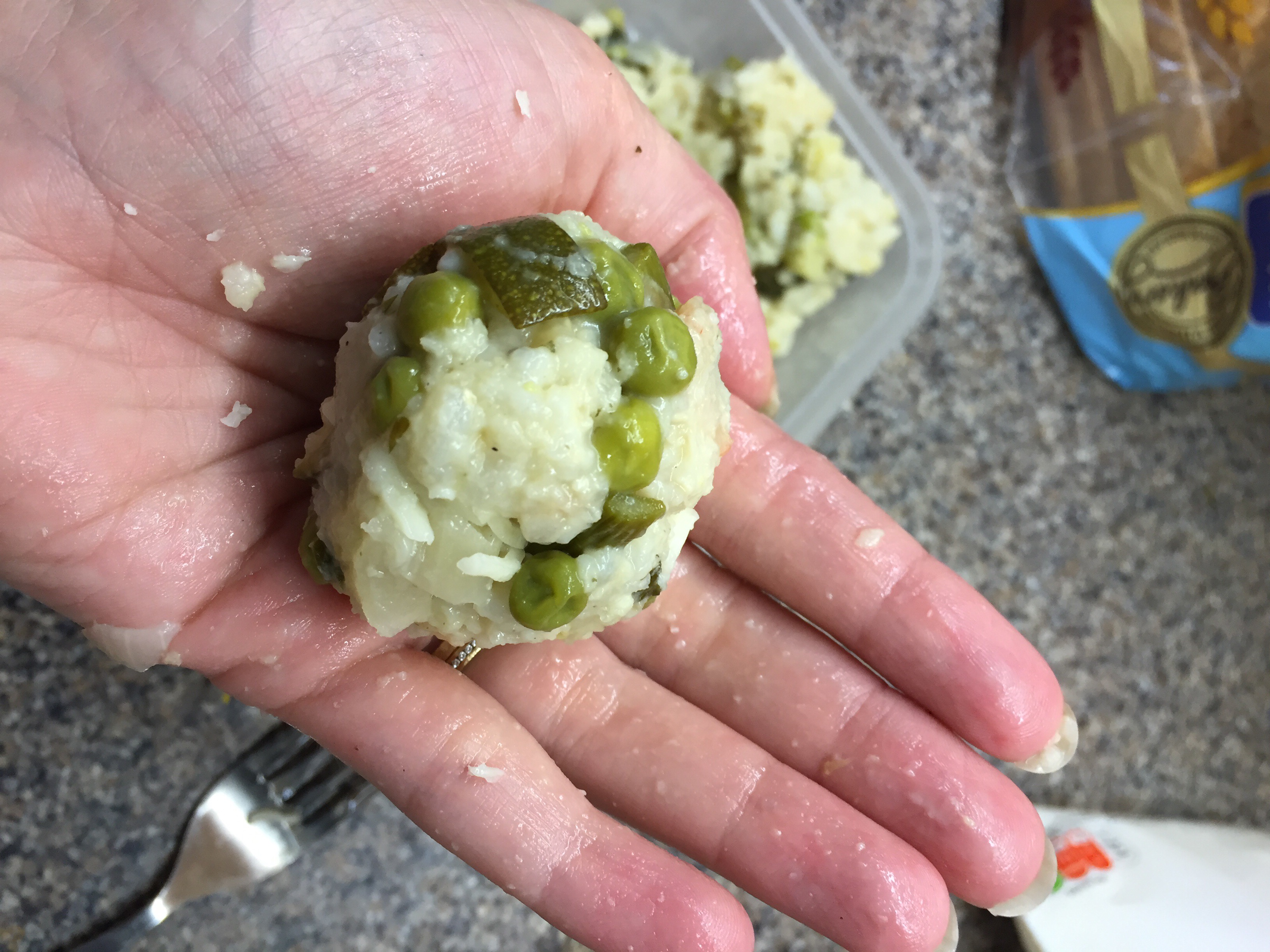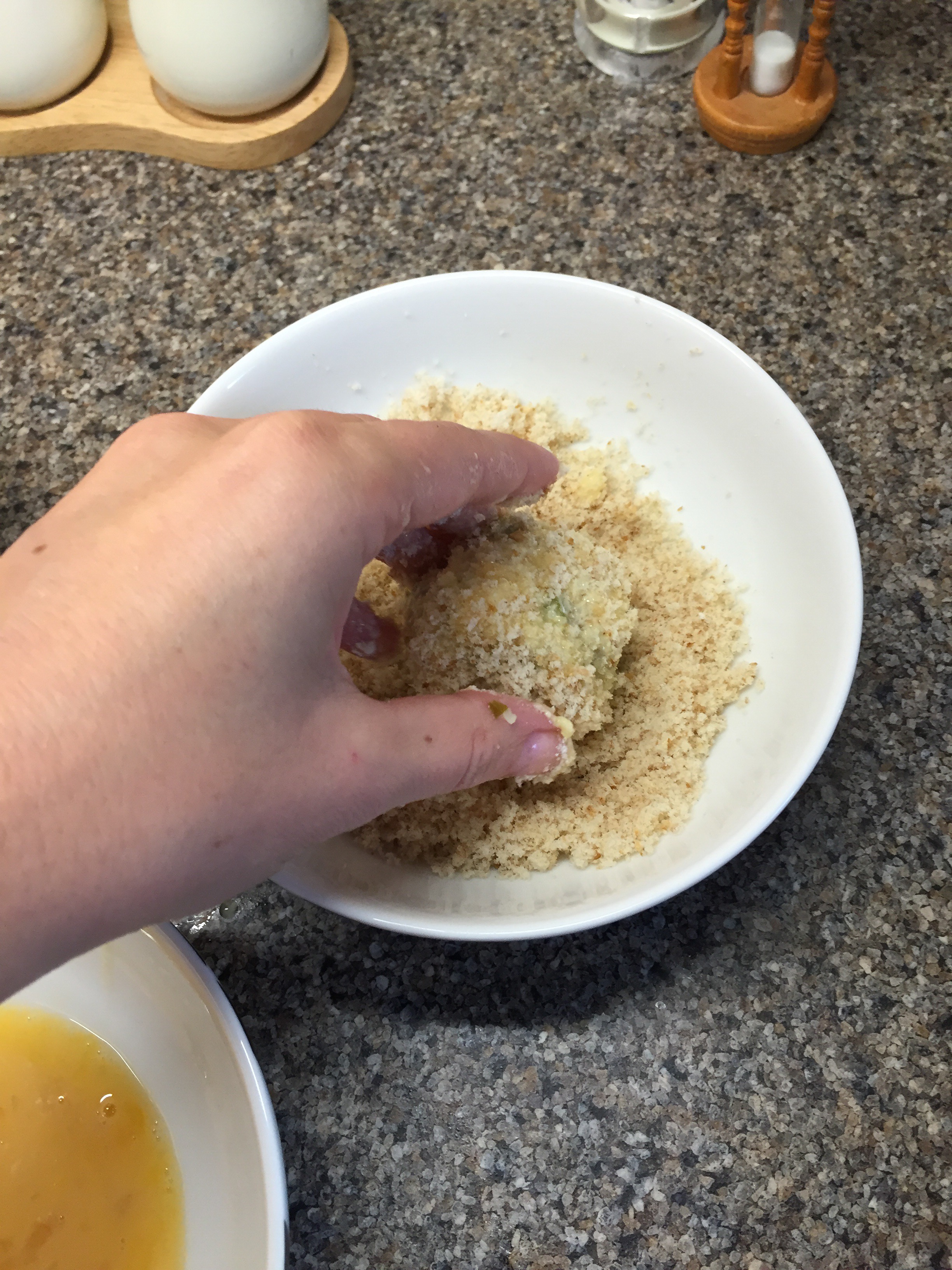 Grab a handful of risotto and attempt to stuff some mozzarella in the middle (I had mixed success with doing this part!)