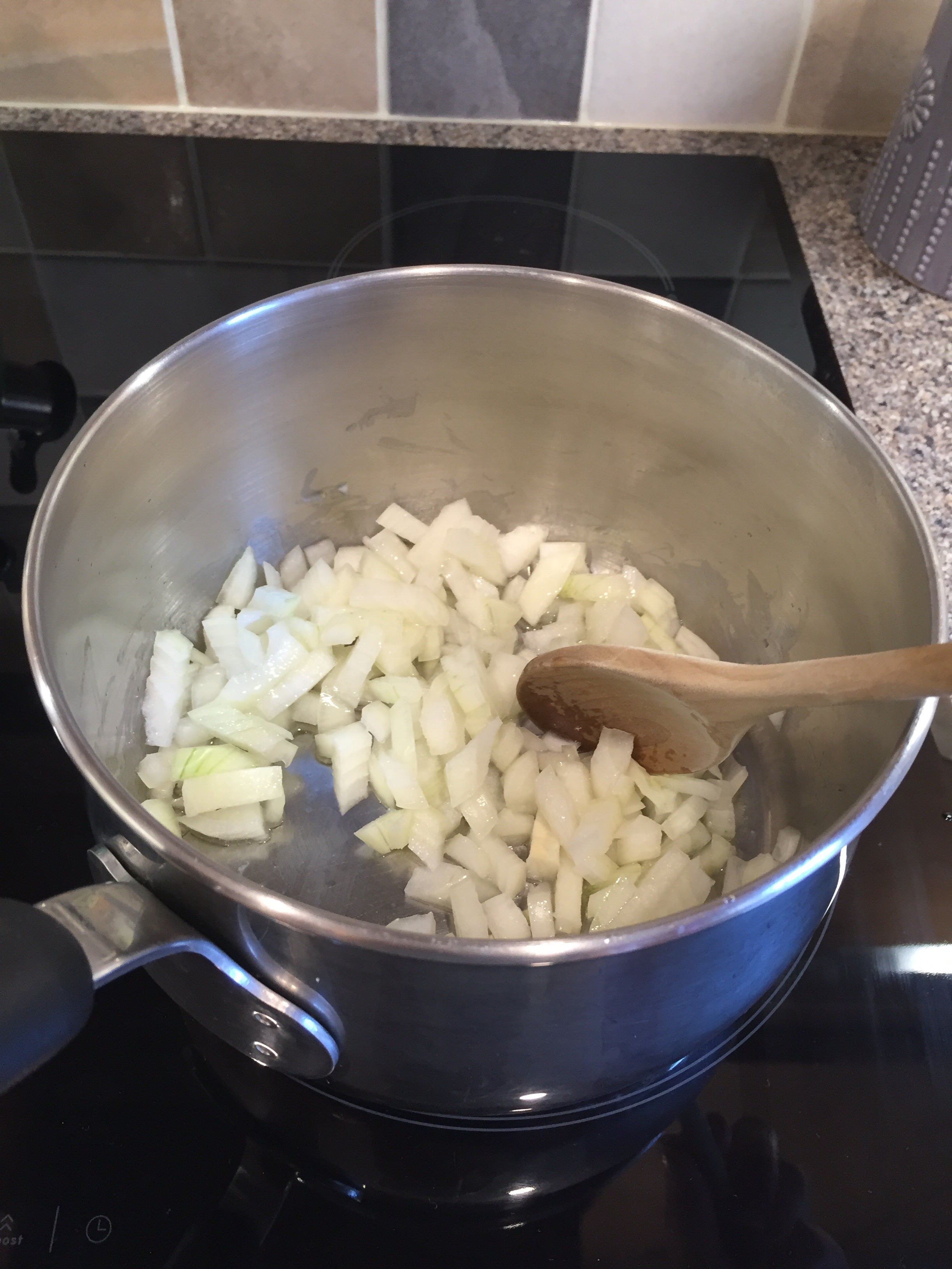 Heat 2 tablespoons of oil and cook the onions on a medium heat until soft