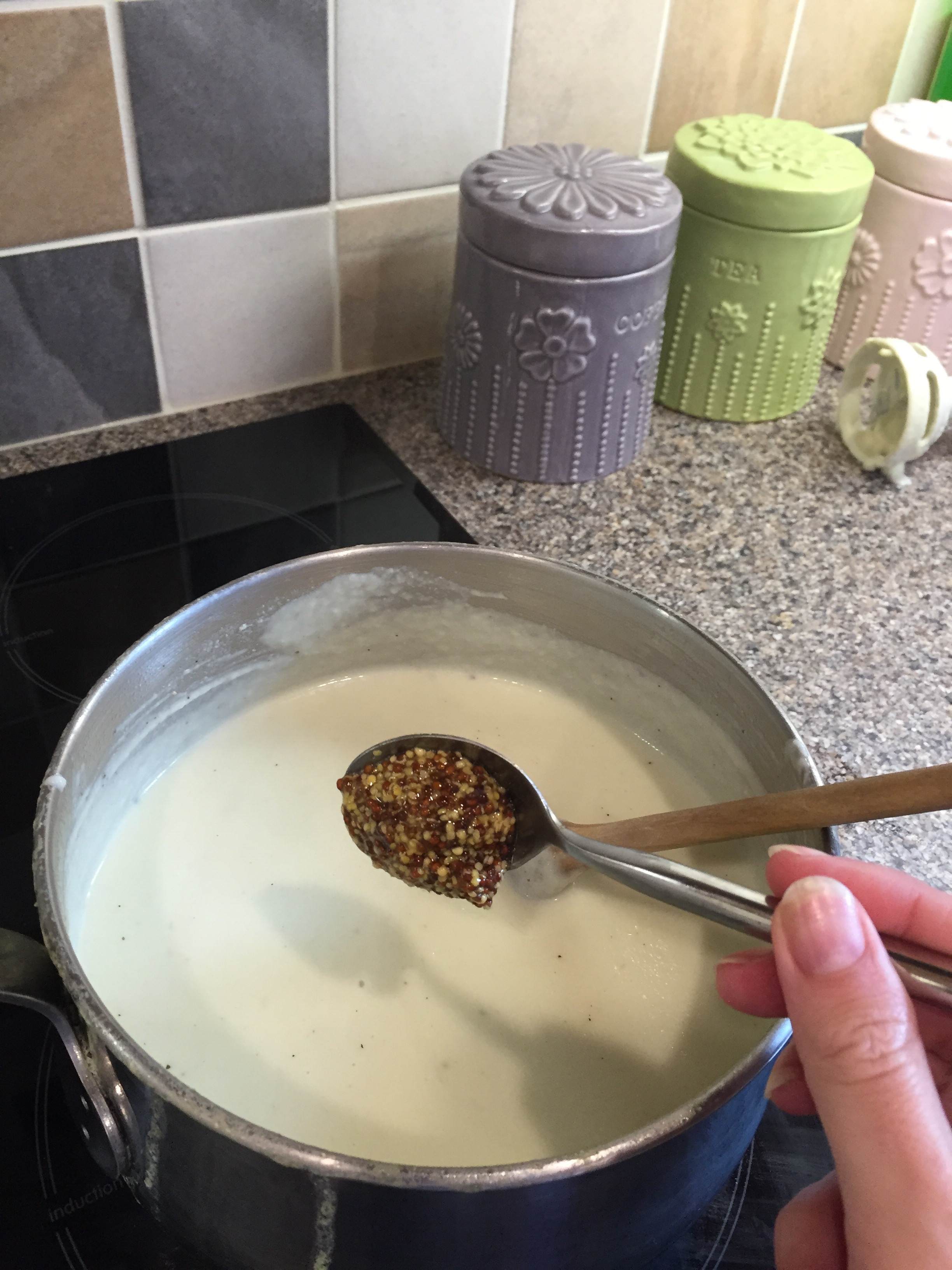 Add a teaspoon of whole grain mustard and a little salt and pepper.