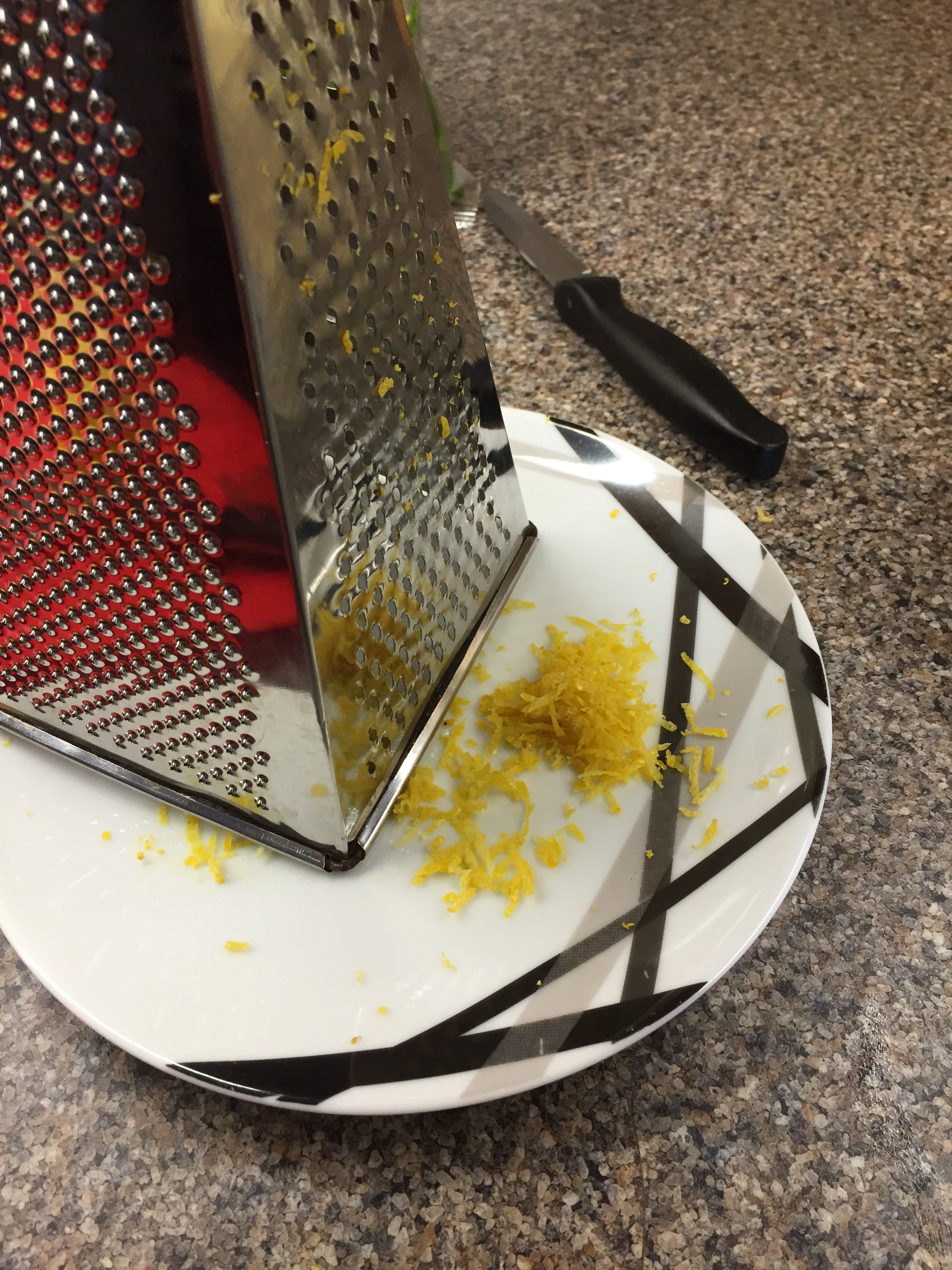 Add the grated peel and squeeze the juice from half a lemon into the pan.