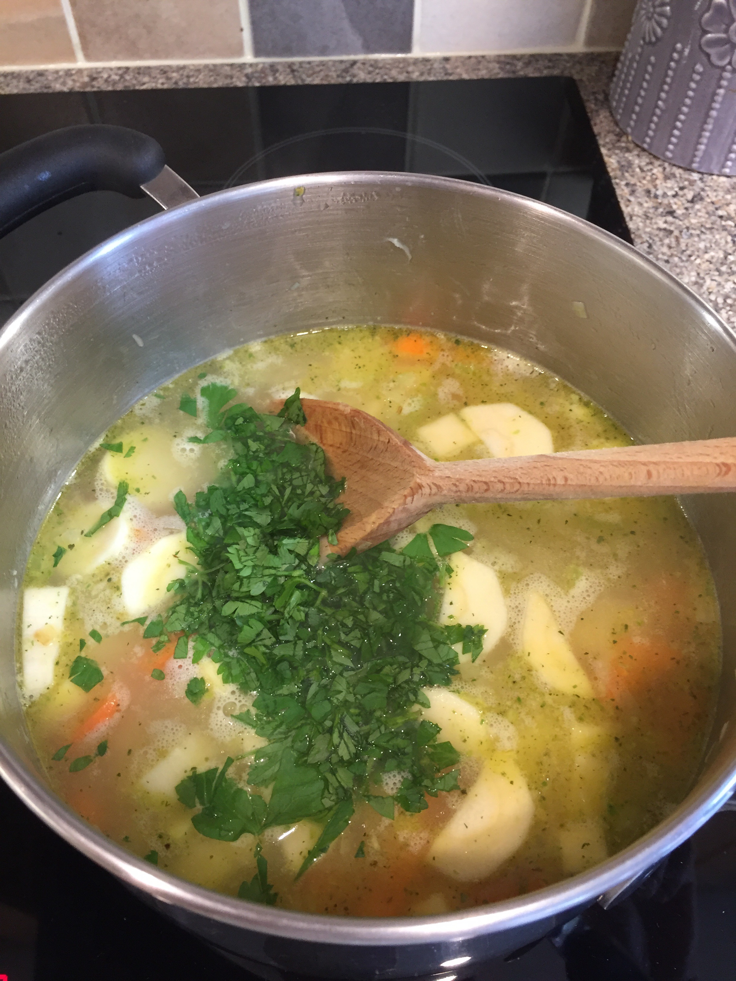 Bring to the boil then reduce to a simmer and leave for 10-20mins until all the veg is soft.