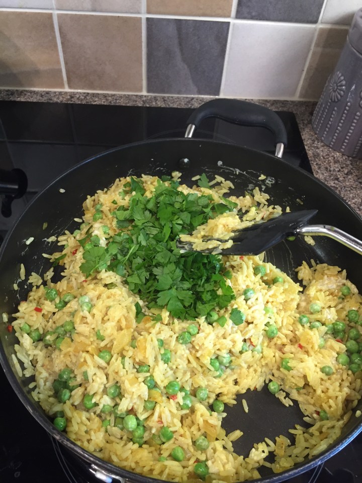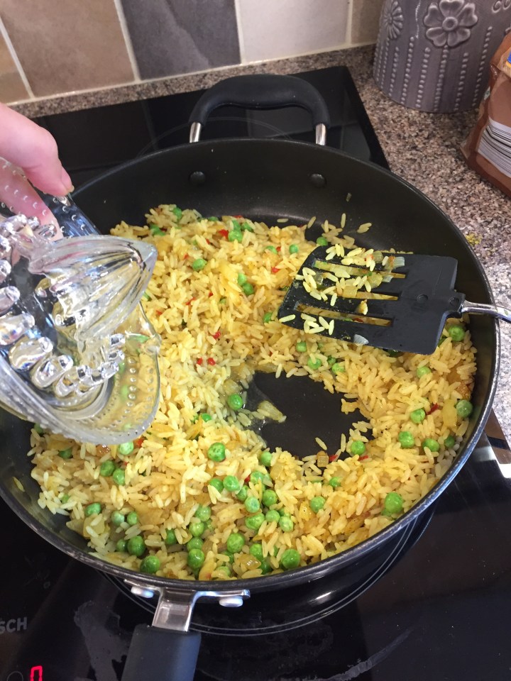 Put the lid on and simmer for 10mins before taking off the heat and leaving for another 3-4mins (all the water should have absorbed into the rice)