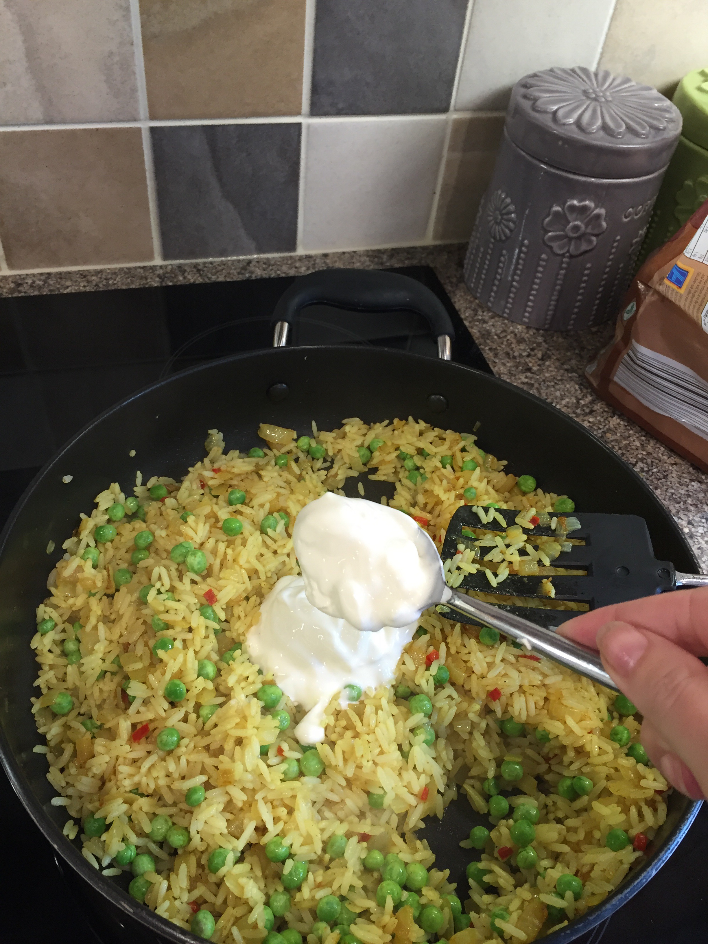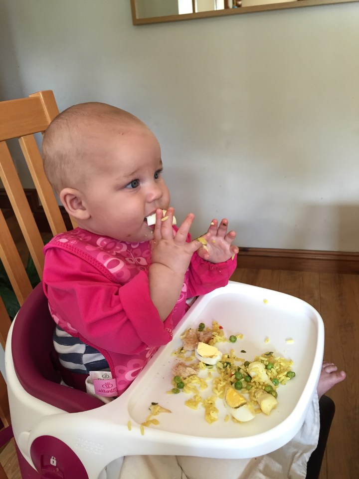 Baby managed to get more into her than I thought she might! There was a lot of rice on the floor by the end of the meal but she’d had fun.
