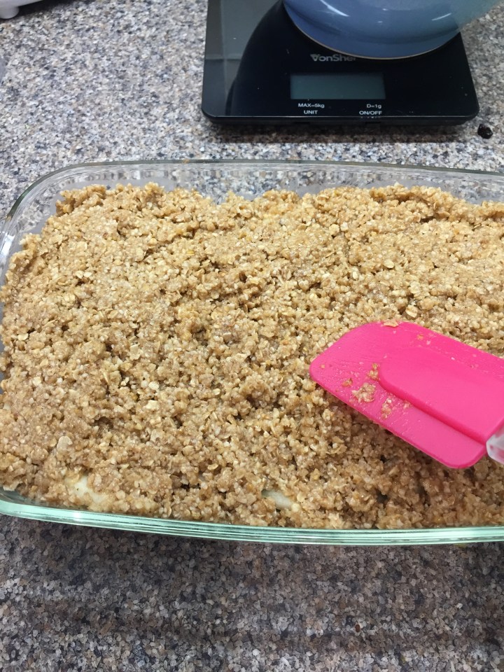 Top with the crumble and bake in a preheated oven at 180 degrees for 30-35mins