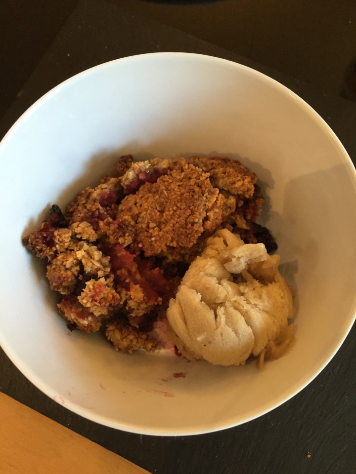Serve with icecream (ours is banana only icecream so no dairy or sugar in that either!)