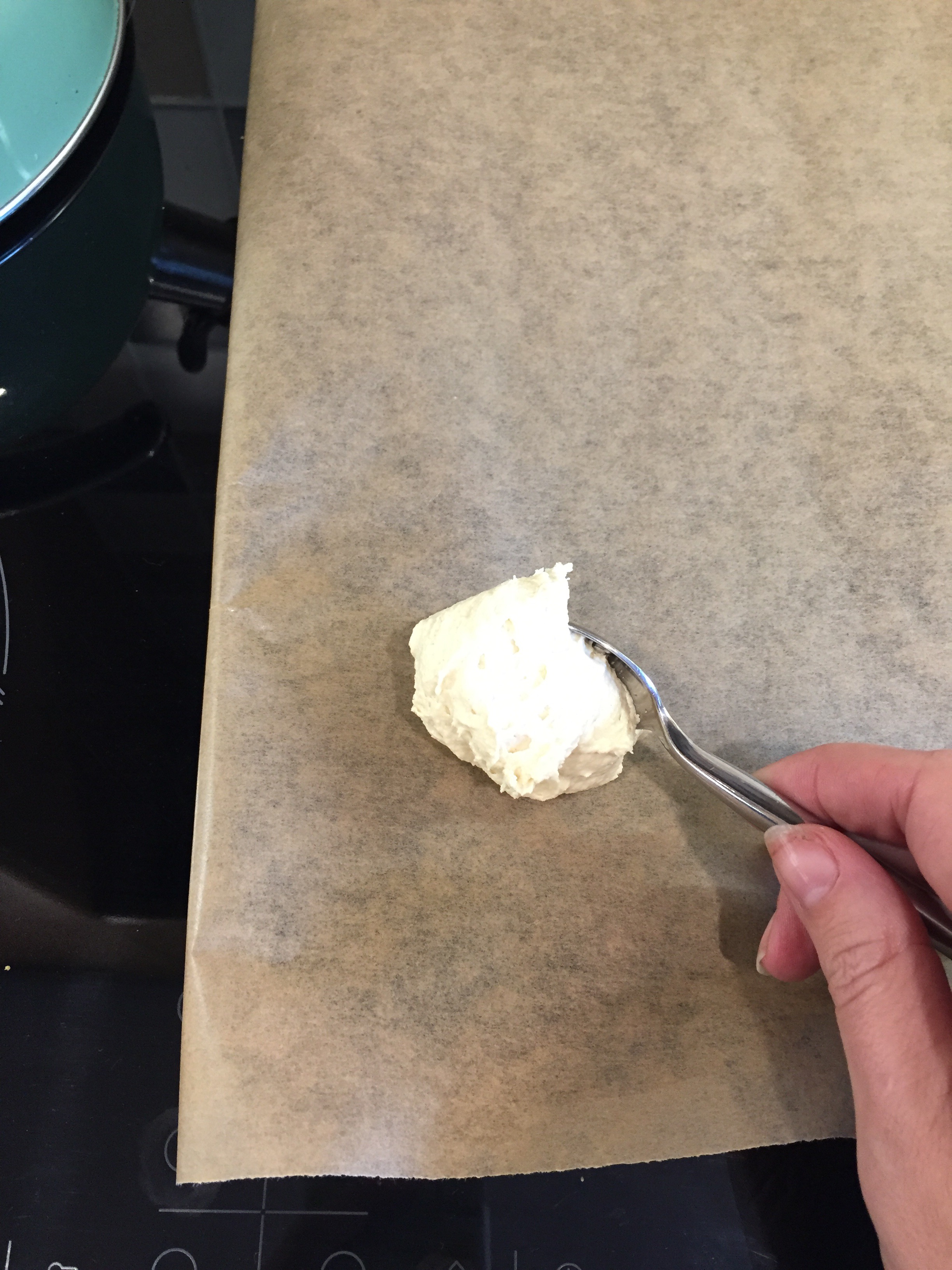 Put some baking paper on a baking tray and use a teaspoon to portion out the mixture. Make sure you leave plenty of room between each blob so it can spread without getting stuck to the next one.