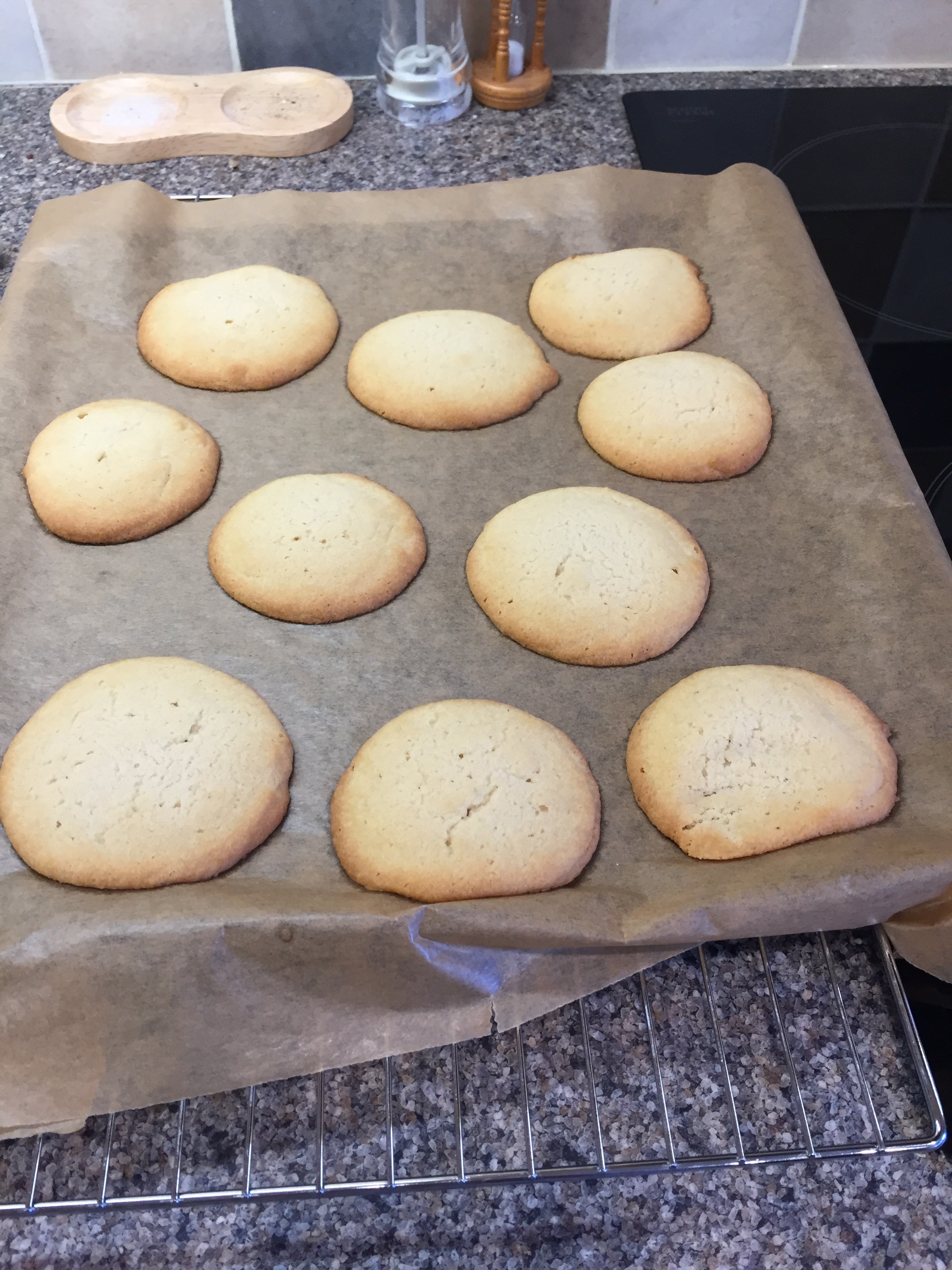 Bake in a preheated oven at 180 degrees for 10mins. Leave to cool on the tray for 5mins before moving to a wire rack for another 10-20mins.