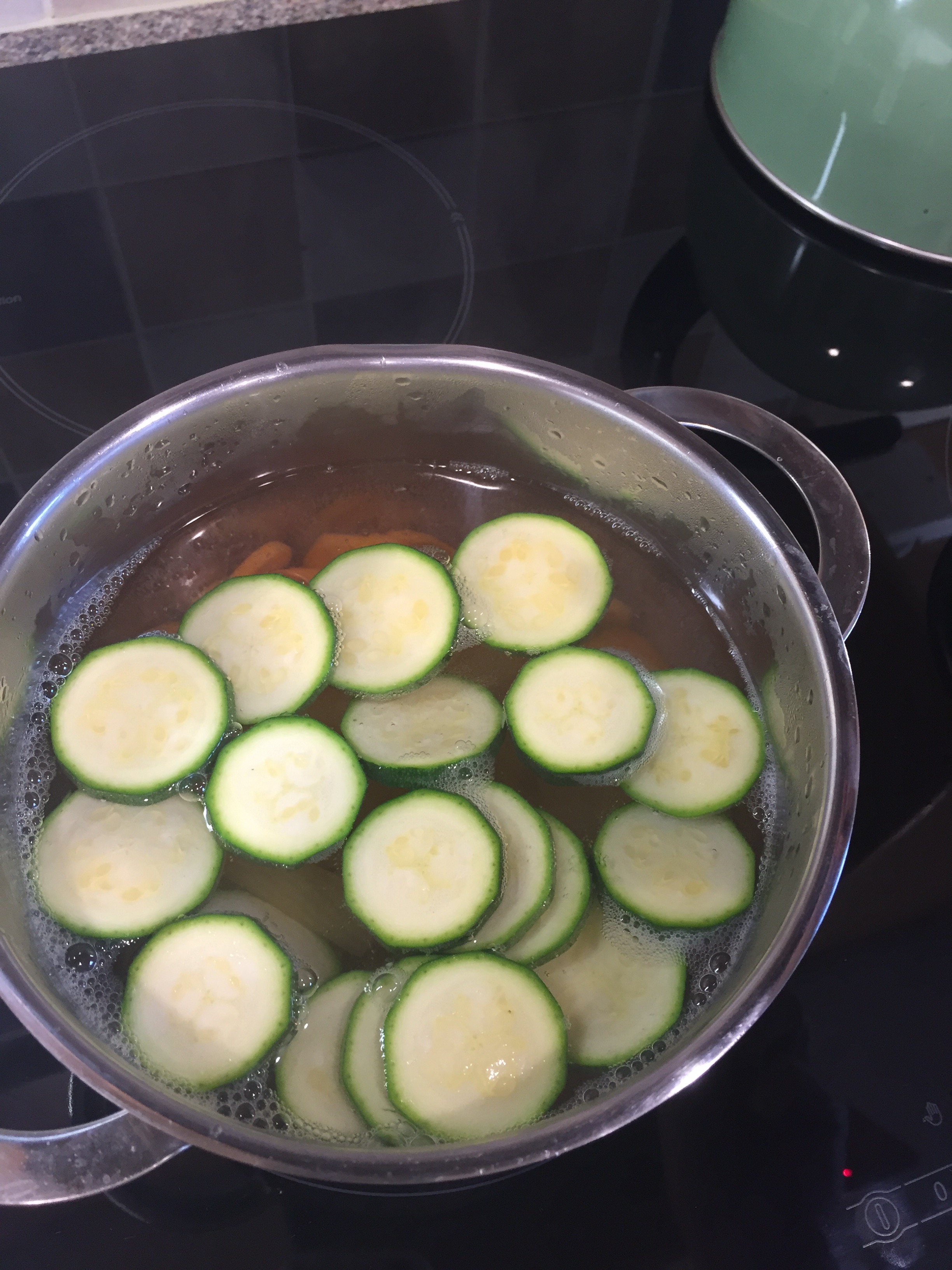 Once the water reaches the boil add the courgette and simmer for 5mins
