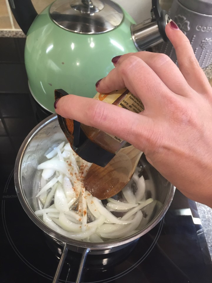 Add the paprika and stir until the onions are coated