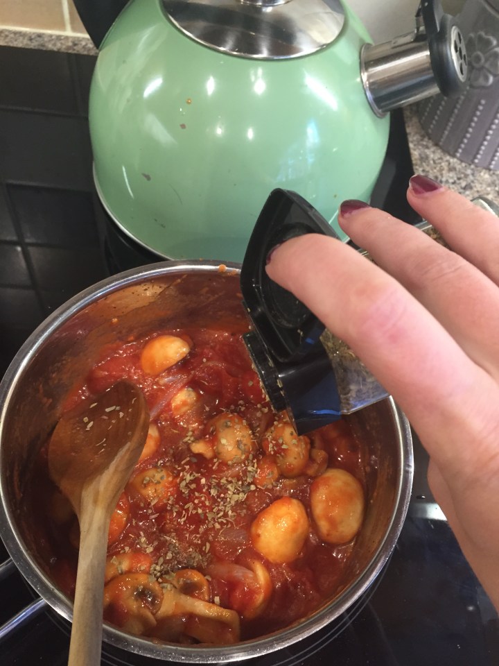 And the oregano and cook through for a couple of mins