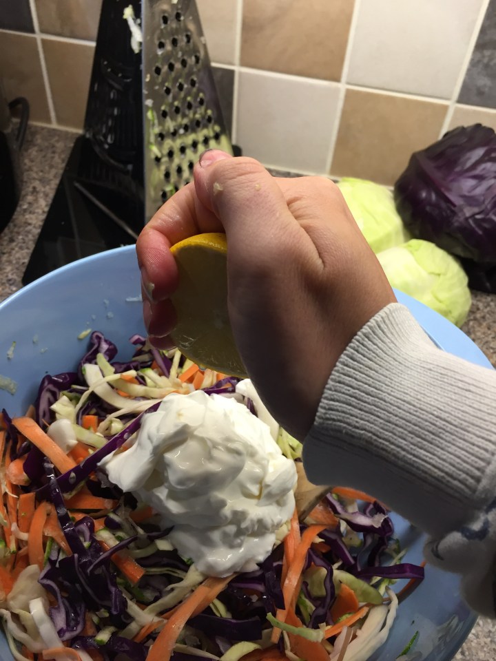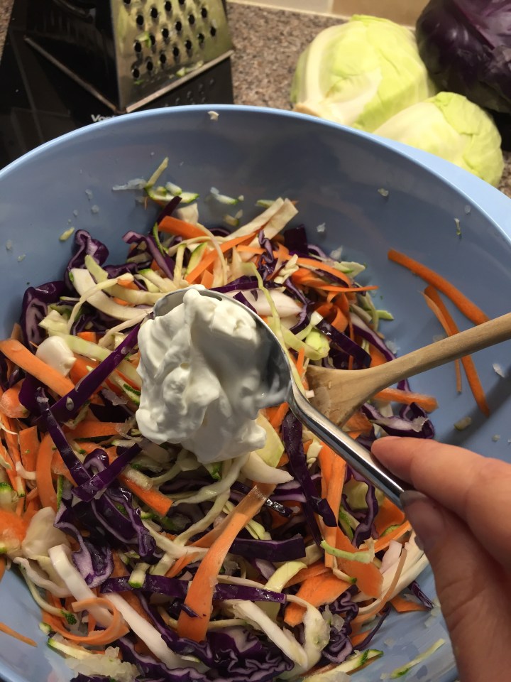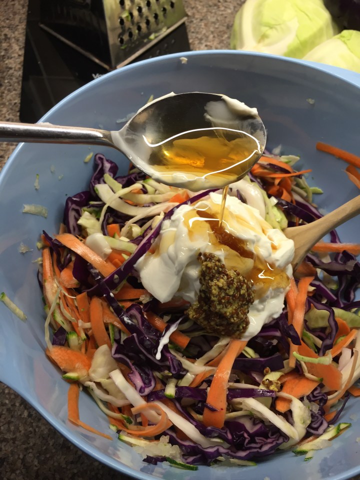 This recipe turns coleslaw into a fabulously healthy dish and it’s so easy to do (I have no idea why I’ve been buying the pre prepared stuff so much when I could be doing this more!)