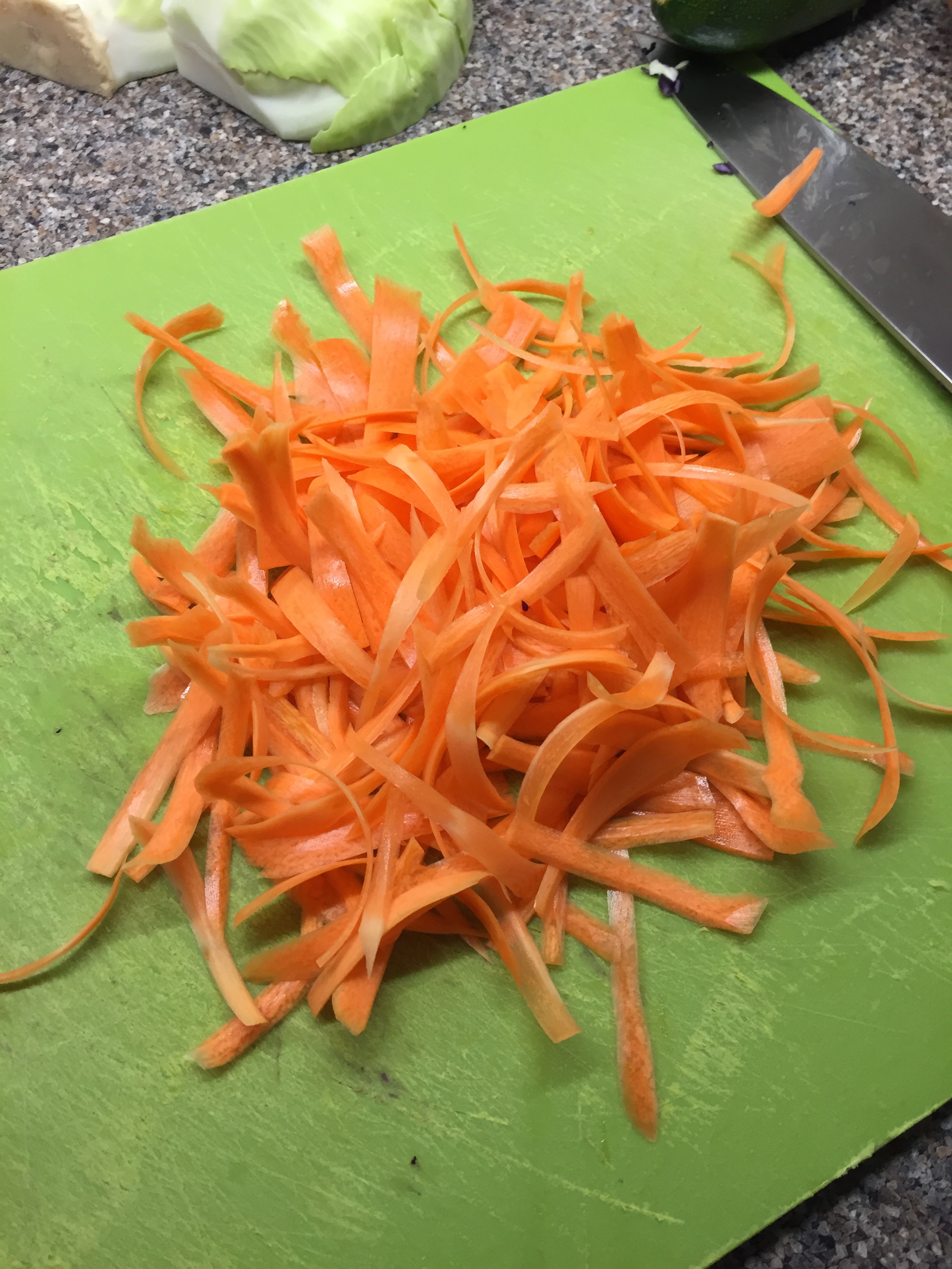 Use a vegetable peeler to create thin strips of carrot