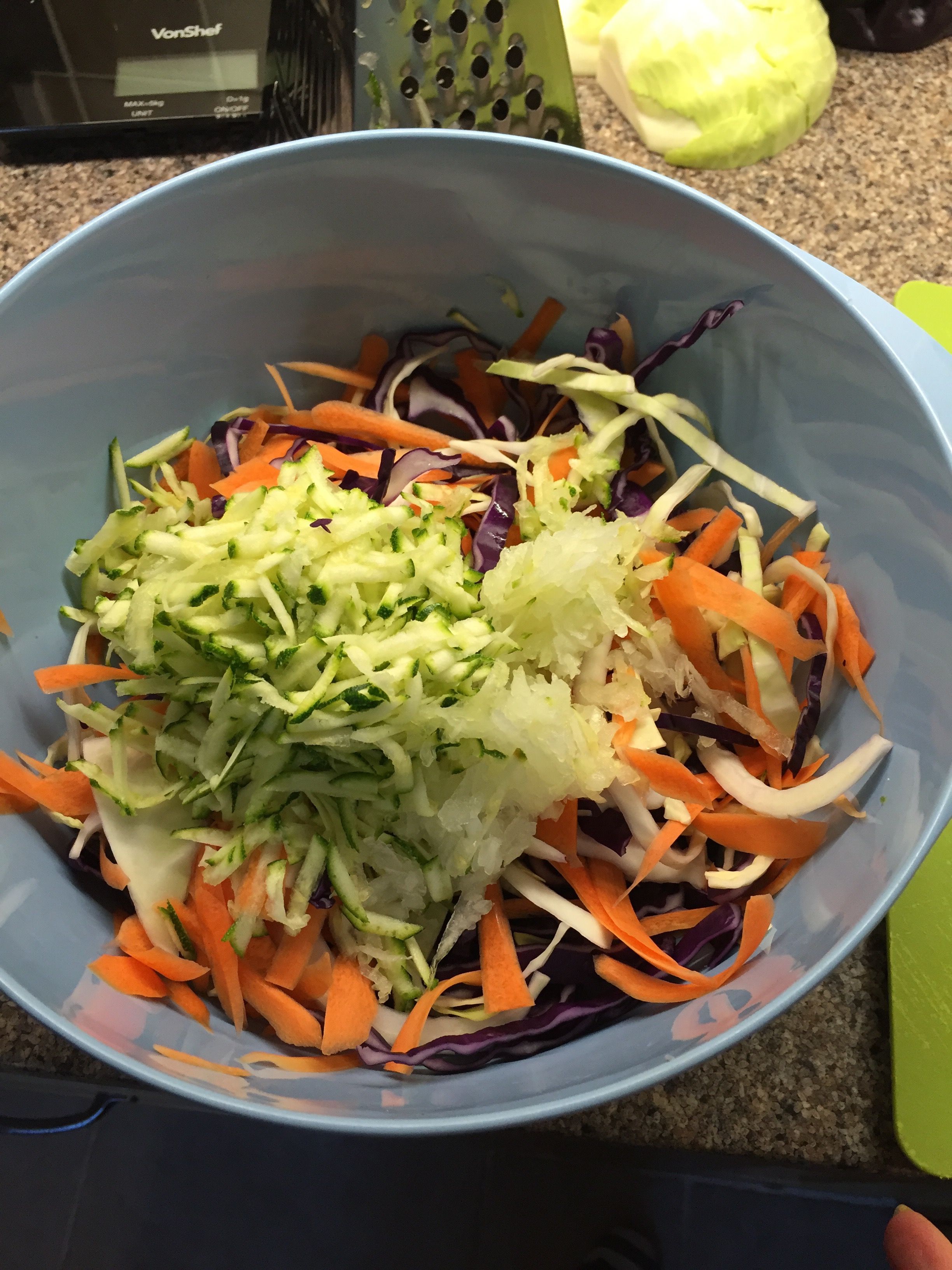 Put all the veg into a large bowl and mix everything together