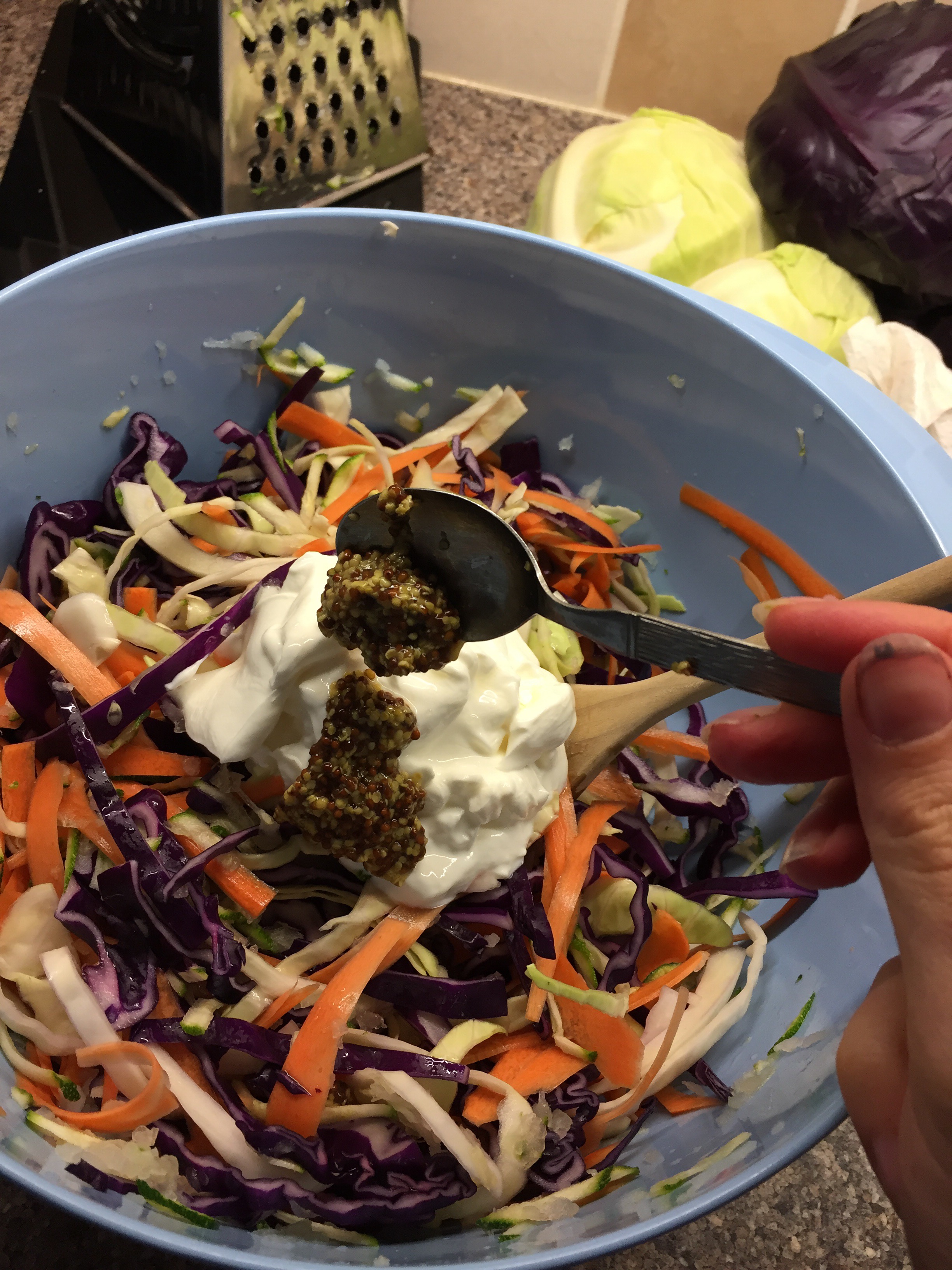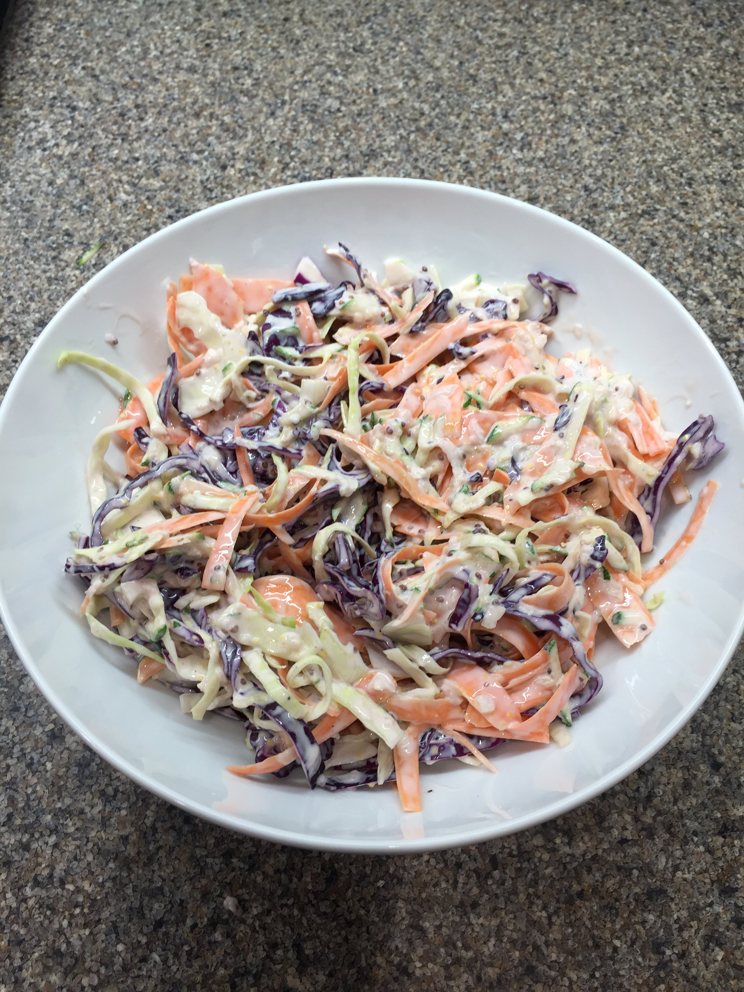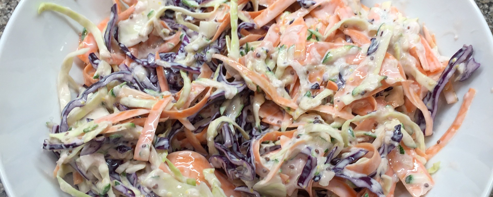 This recipe turns coleslaw into a fabulously healthy dish and it’s so easy to do (I have no idea why I’ve been buying the pre prepared stuff so much when I could be doing this more!)