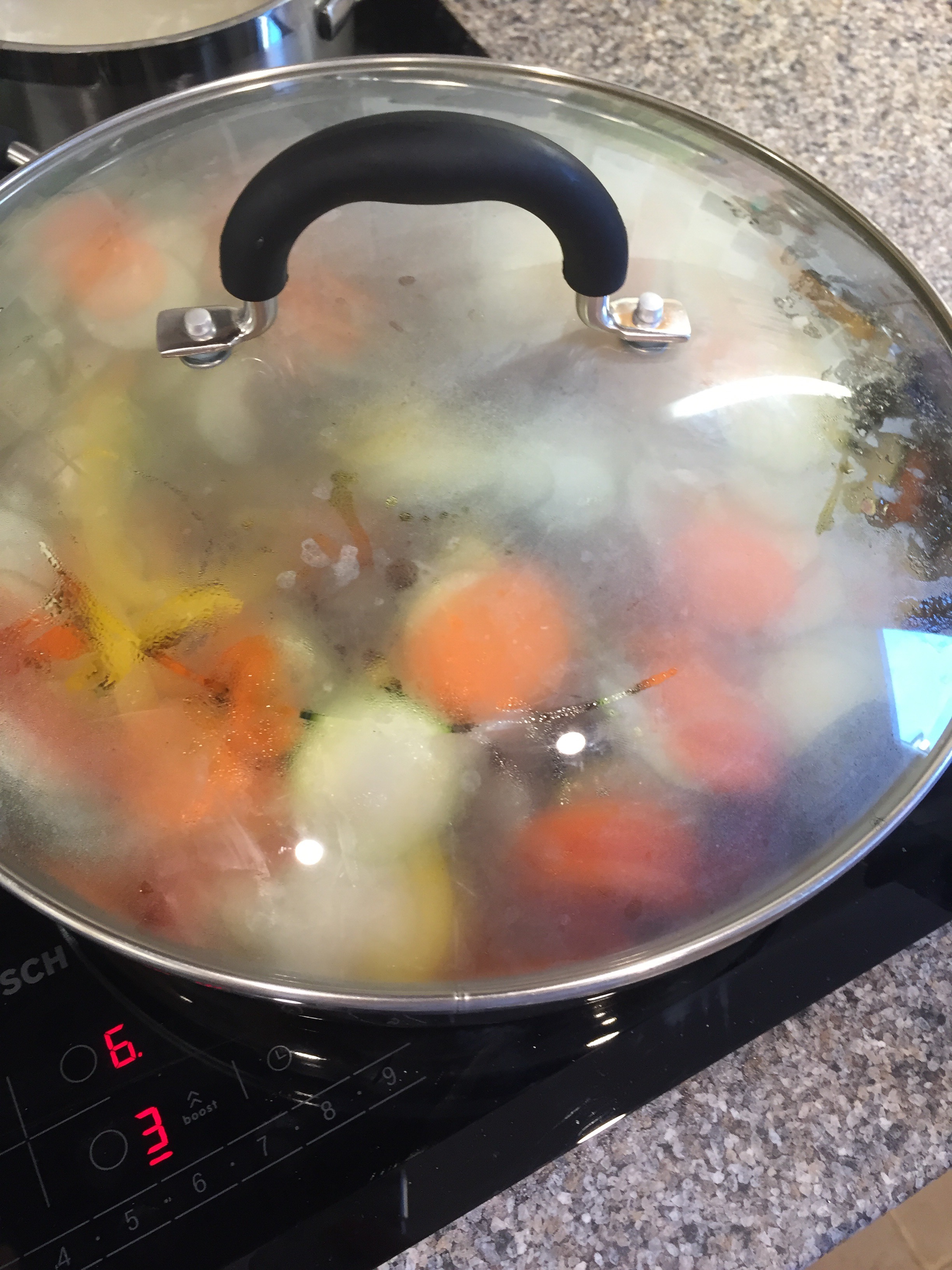 Pop a lid on the pan and reduce the heat to low and leave for 20-25mins. At this point you can put the oven on to warm if you plan to cooking straight away.