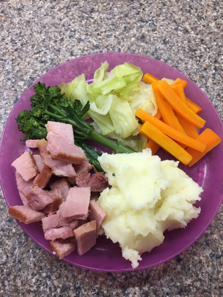 We serve ours with mash potato, carrots and cabbage and today with long stem broccoli too! Delicious! If you’re feeling a bit naughty you can use the syrup that gathers in the bottom of the slow cooker as a gravy replacement!!