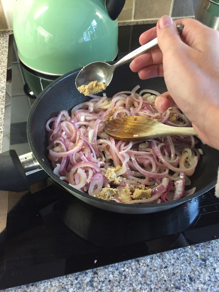 Sprinkle over the sugar and add the balsamic vinegar. Stir and continue to cook for a further 5-10mins