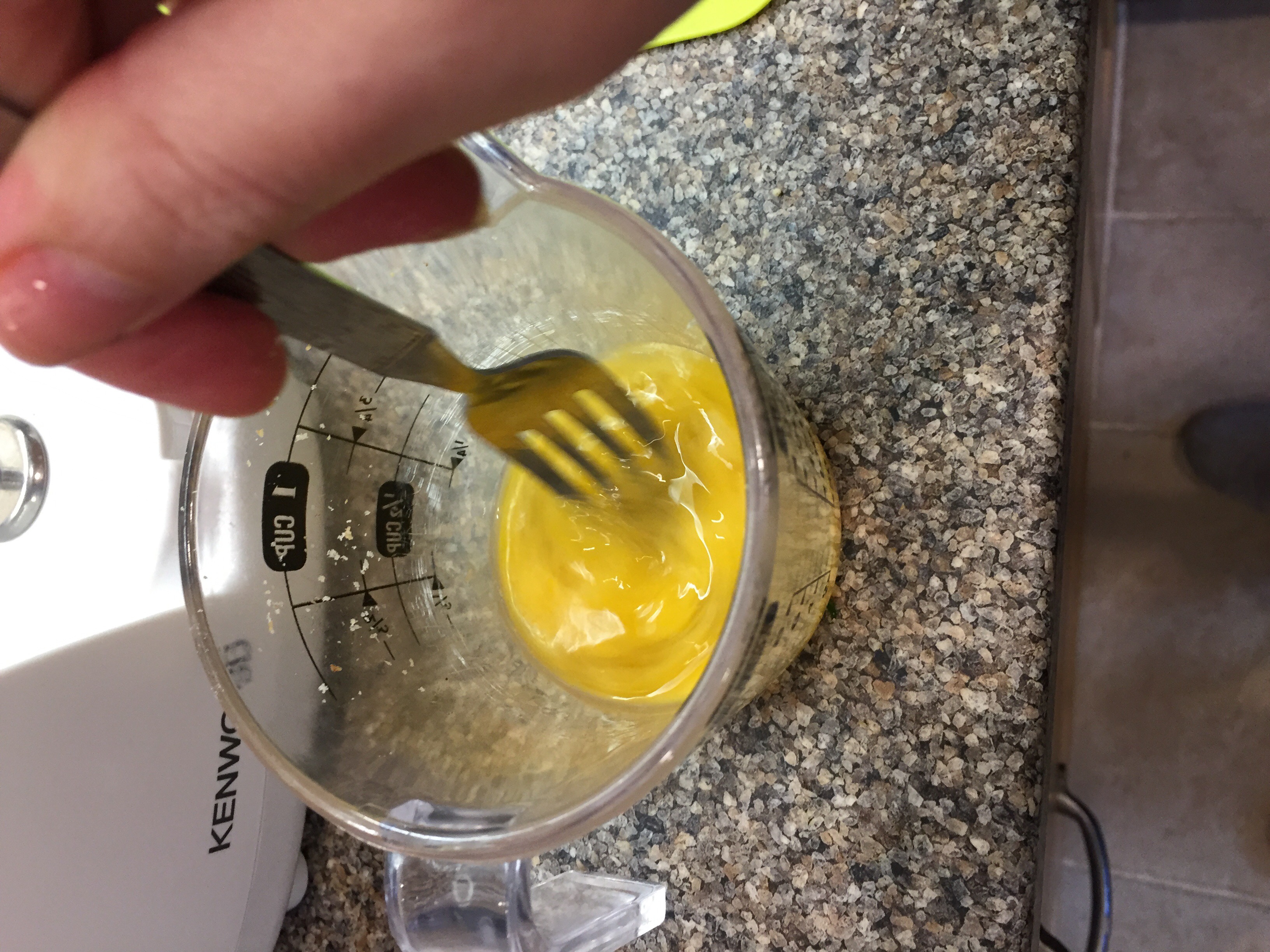 Add around 2/3 of the breadcrumbs and 2/3 of the beaten egg and mix together. If the mixture seems a bit wet top it up with a few more breadcrumbs or if it seems a bit dry use the rest of the egg. If it seems OK discard the rest of the breadcrumbs and egg.