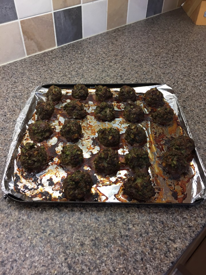 Roll the mixture into balls (I did mine around golf ball size) and bake in the oven at 170 degrees for 35-40mins