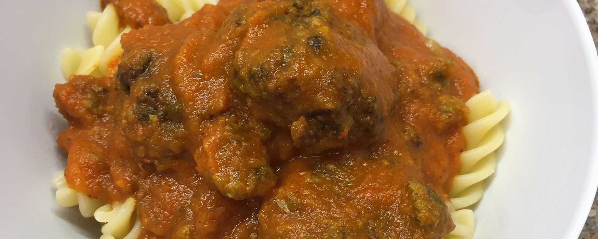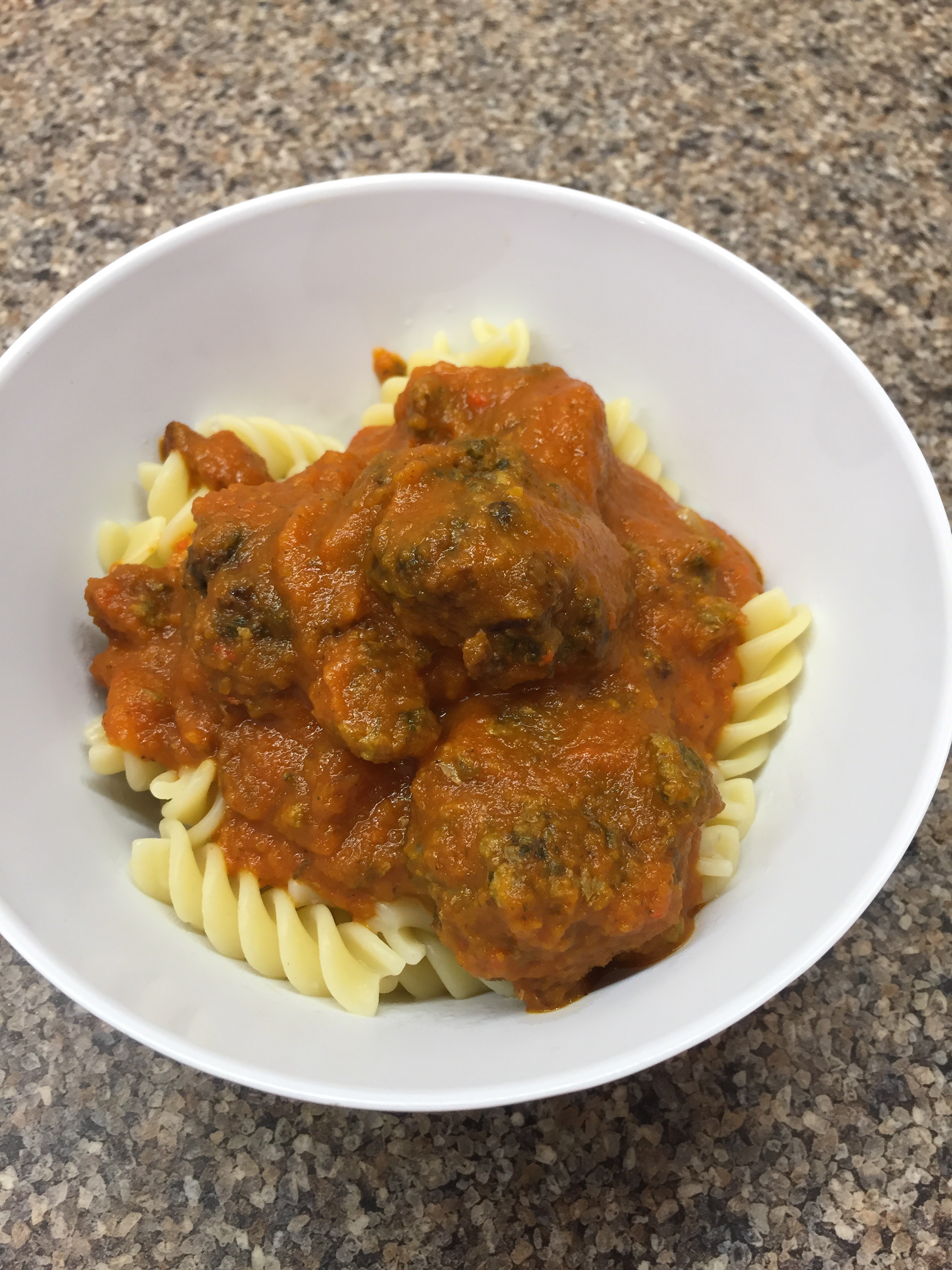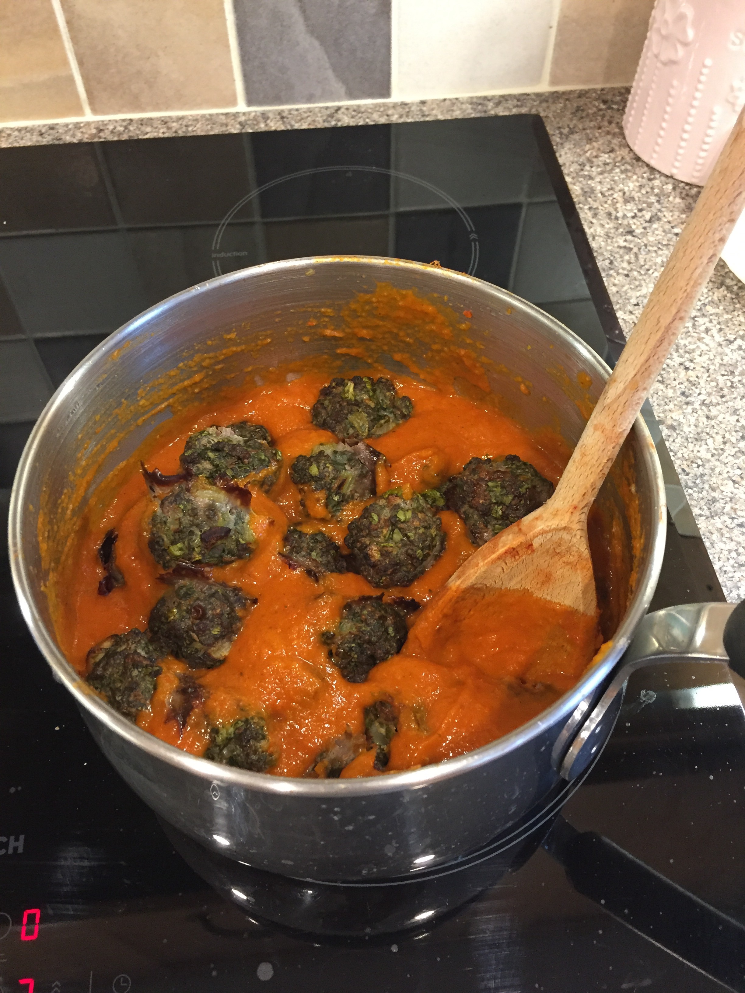 Put the meatballs into a pasta sauce and simmer for 10mins