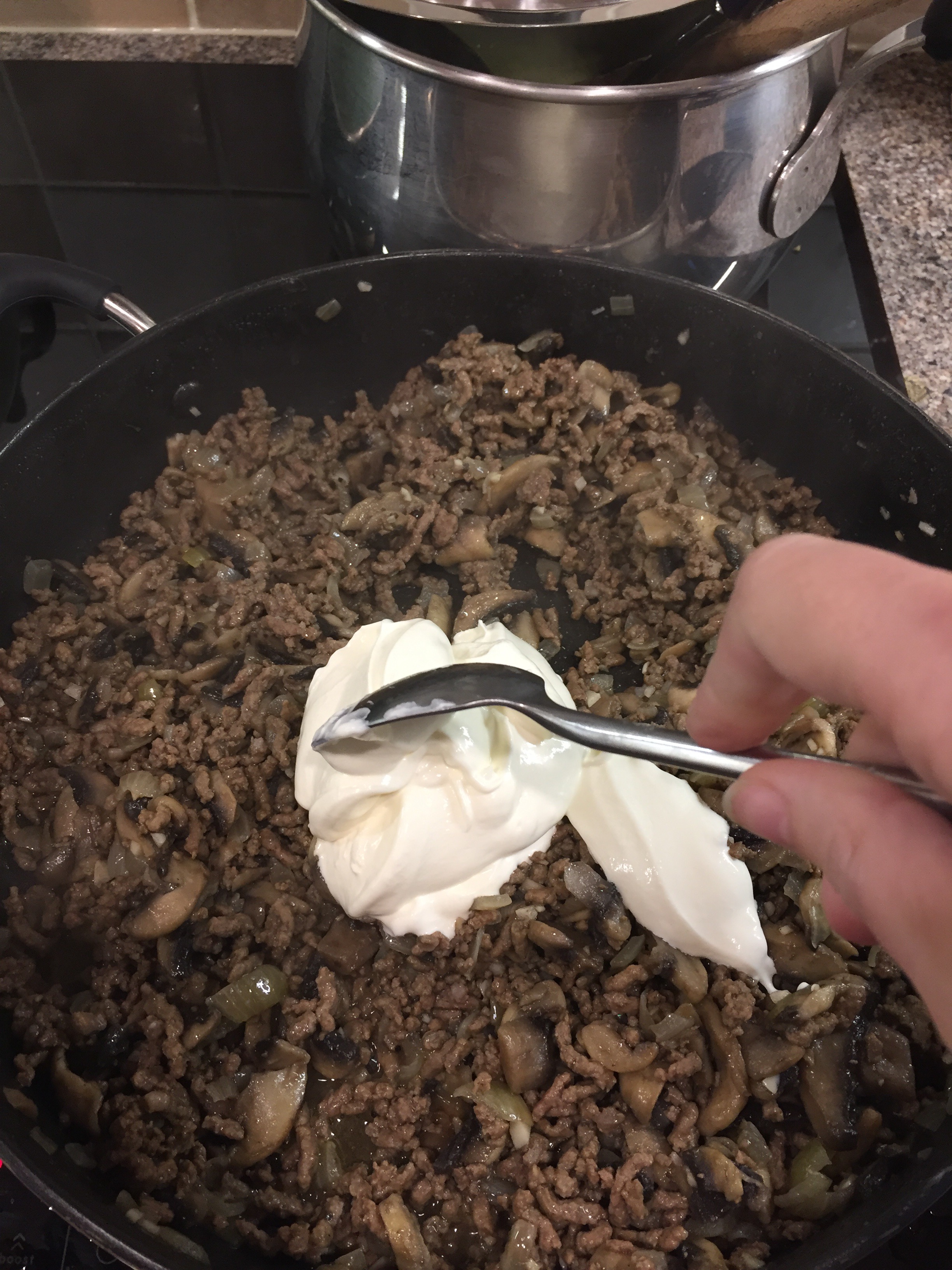 Finally add the sour cream