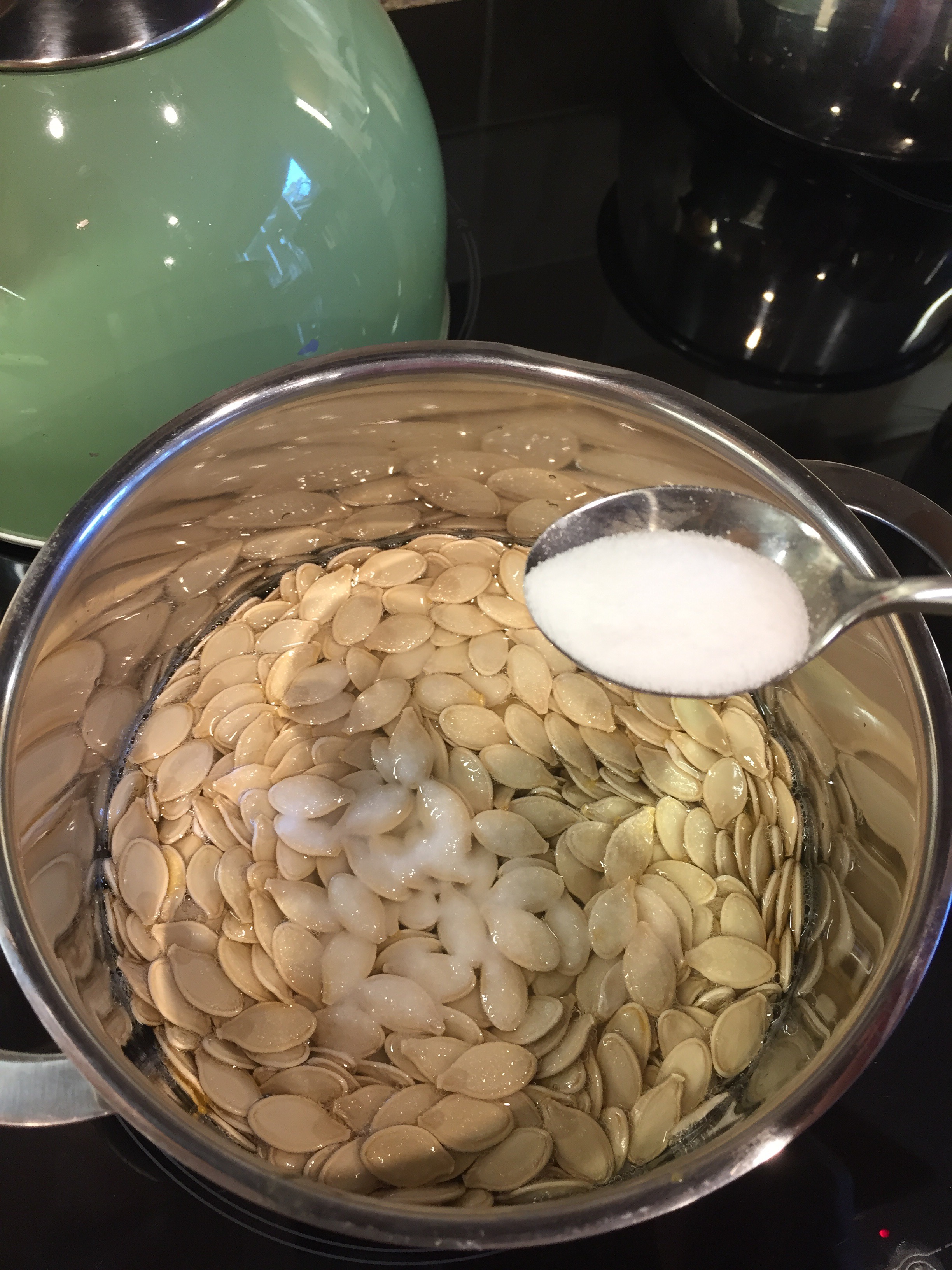 Put the seeds into a pan and cover with water. Add the salt.