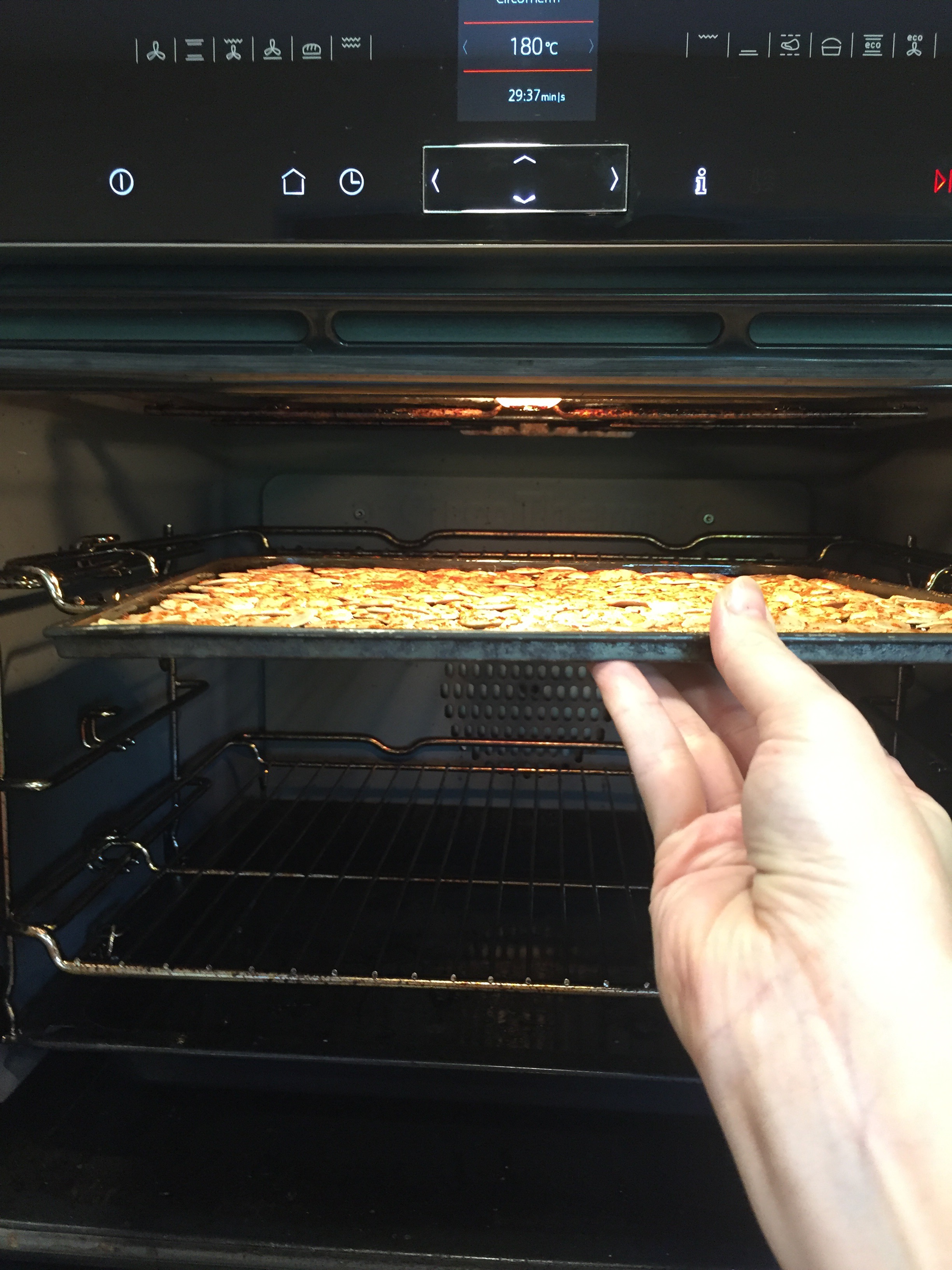 Pop into a preheated oven at 180 degrees on the top shelf for around 15minutes until they’ve browned