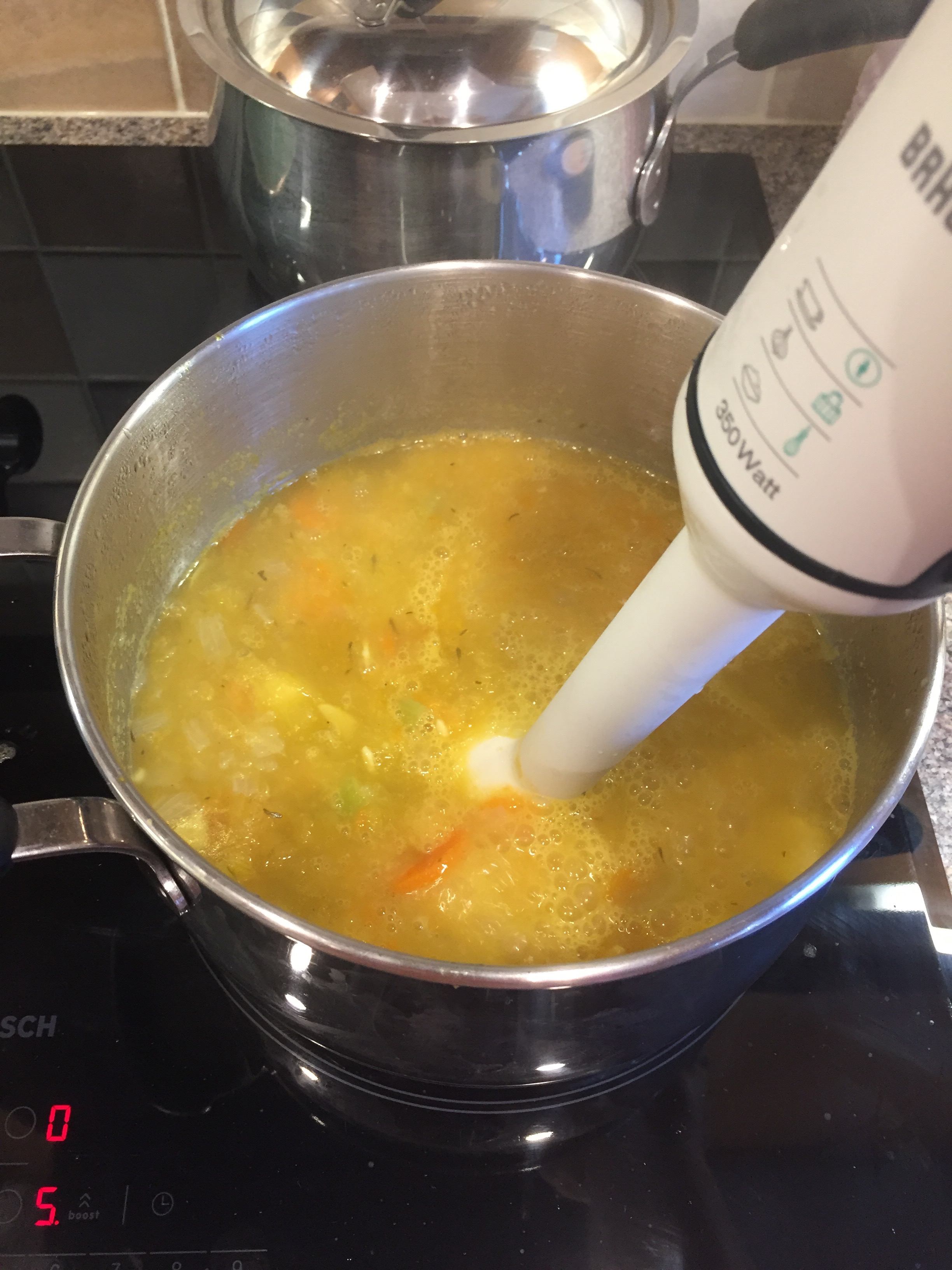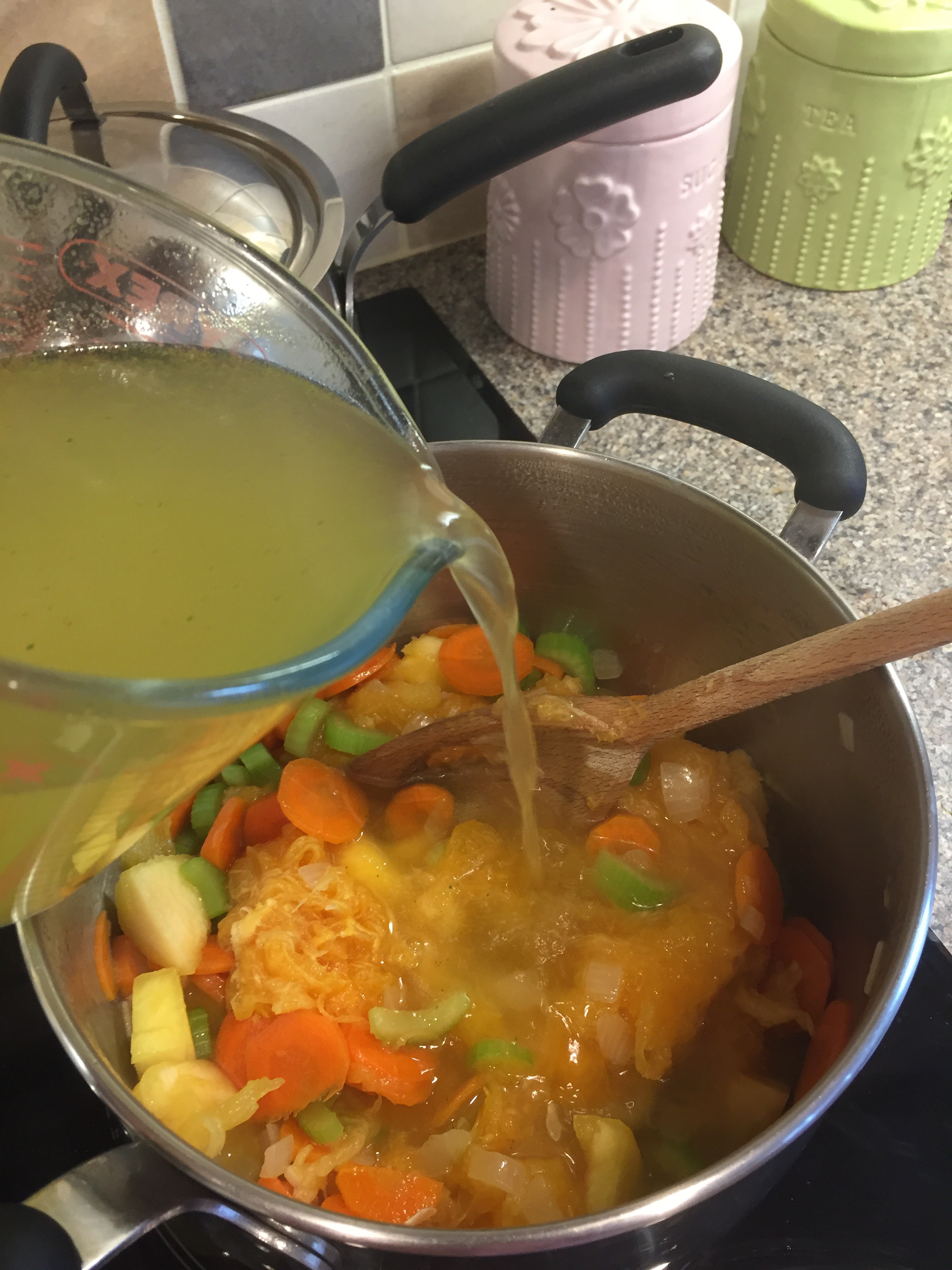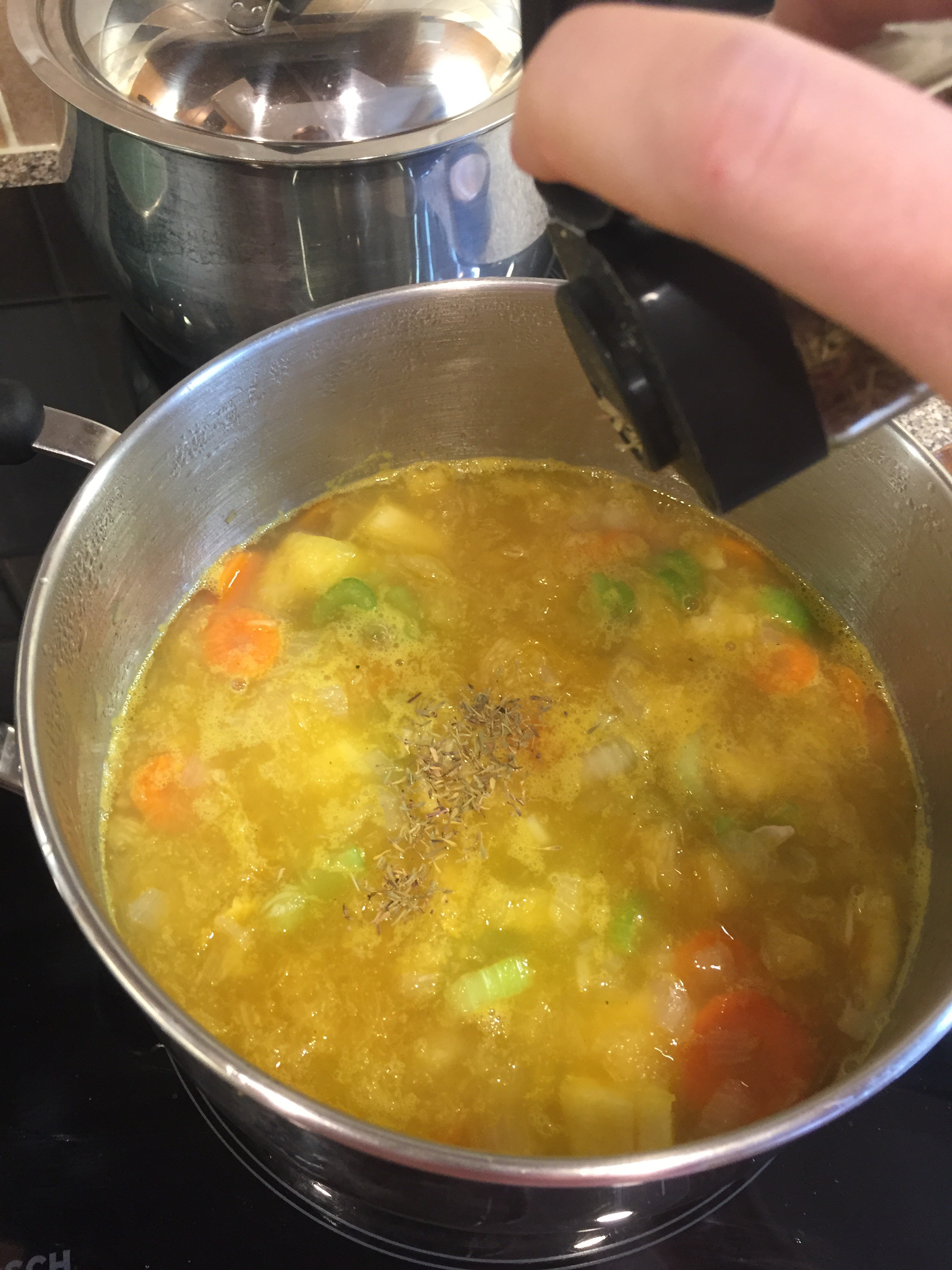 And the thyme. Bring to the boil and reduce to a simmer for 15-20minutes until the veg is soft