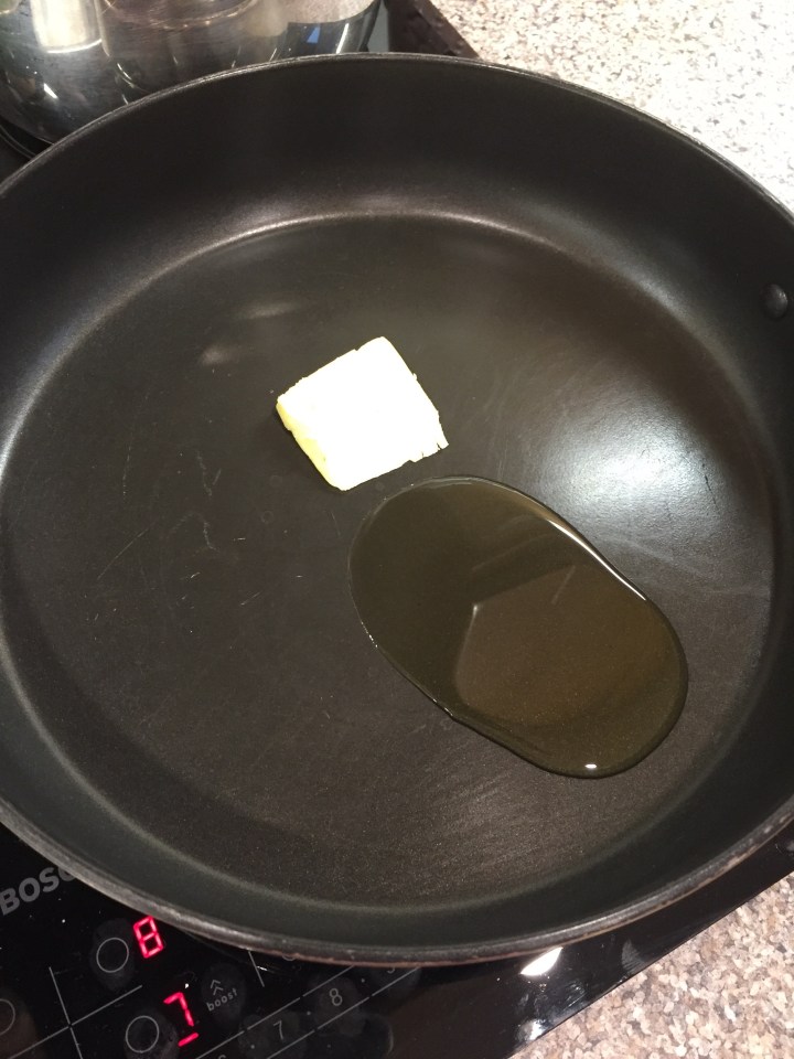 In a large frying pan heat a large nob of butter and a tablespoon of olive oil