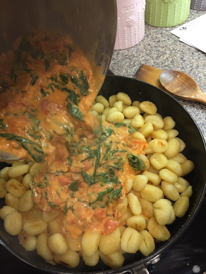 The instructions on the gnocchi tells you to boil it but it’s way better pan fried (in butter!!) so that’s how I’ve done it- you’re very welcome to boil instead if you prefer.