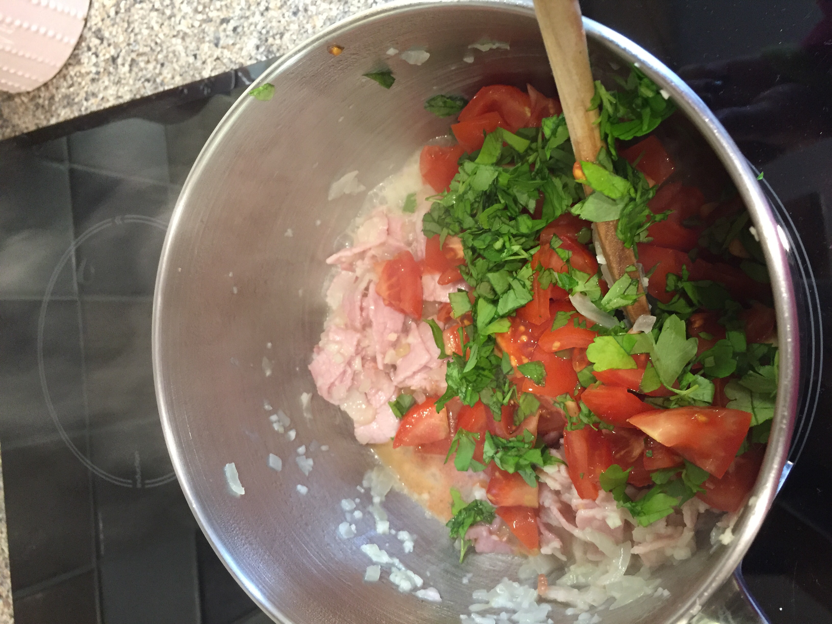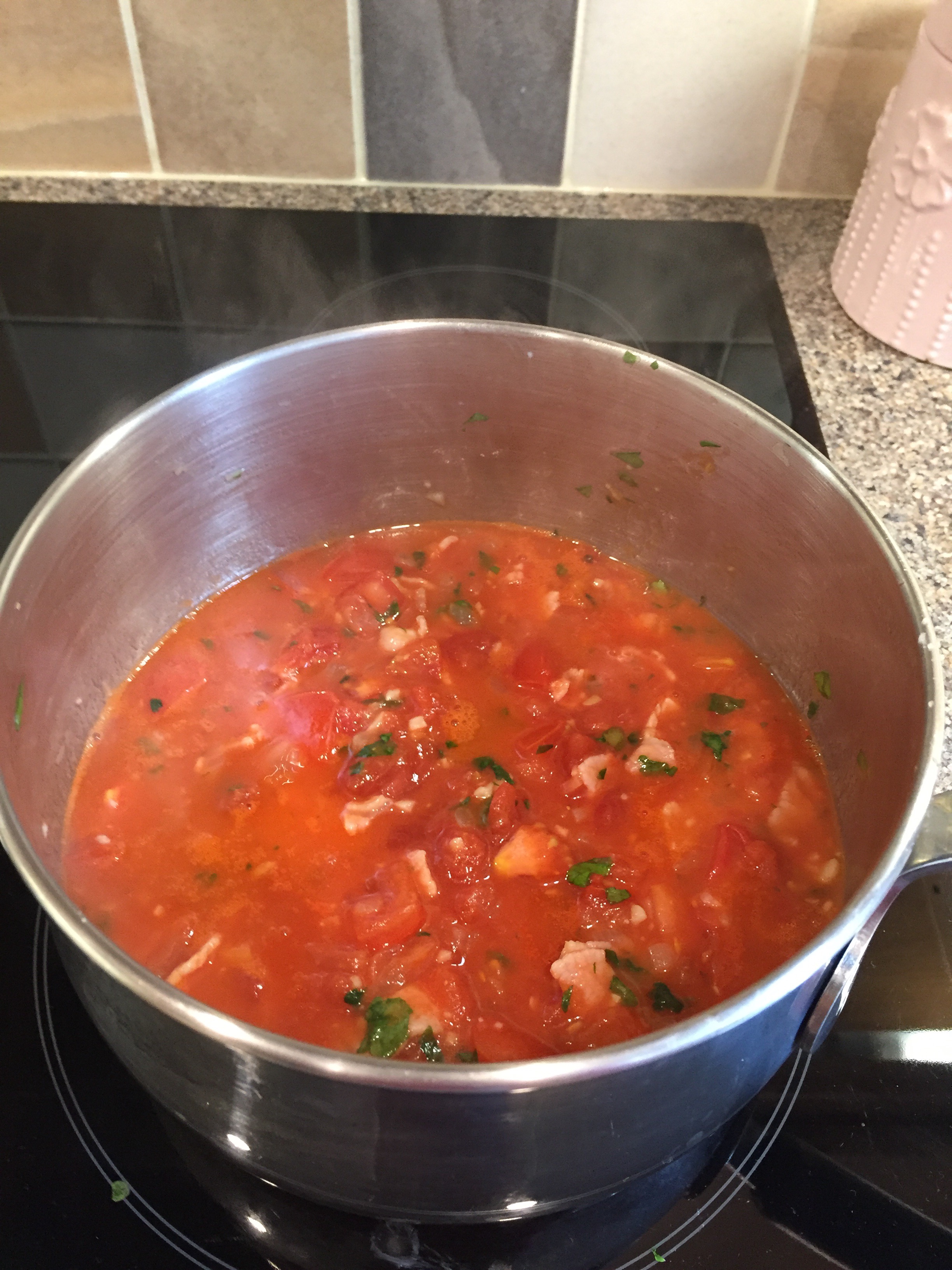 Meanwhile- another optional extra is to add bacon. If you’re doing that use kitchen scissors to cut into chunks.