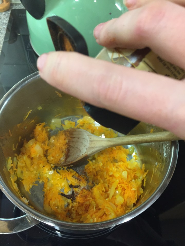 Finely dice the onion, finely chop the garlic and finely grate the carrot