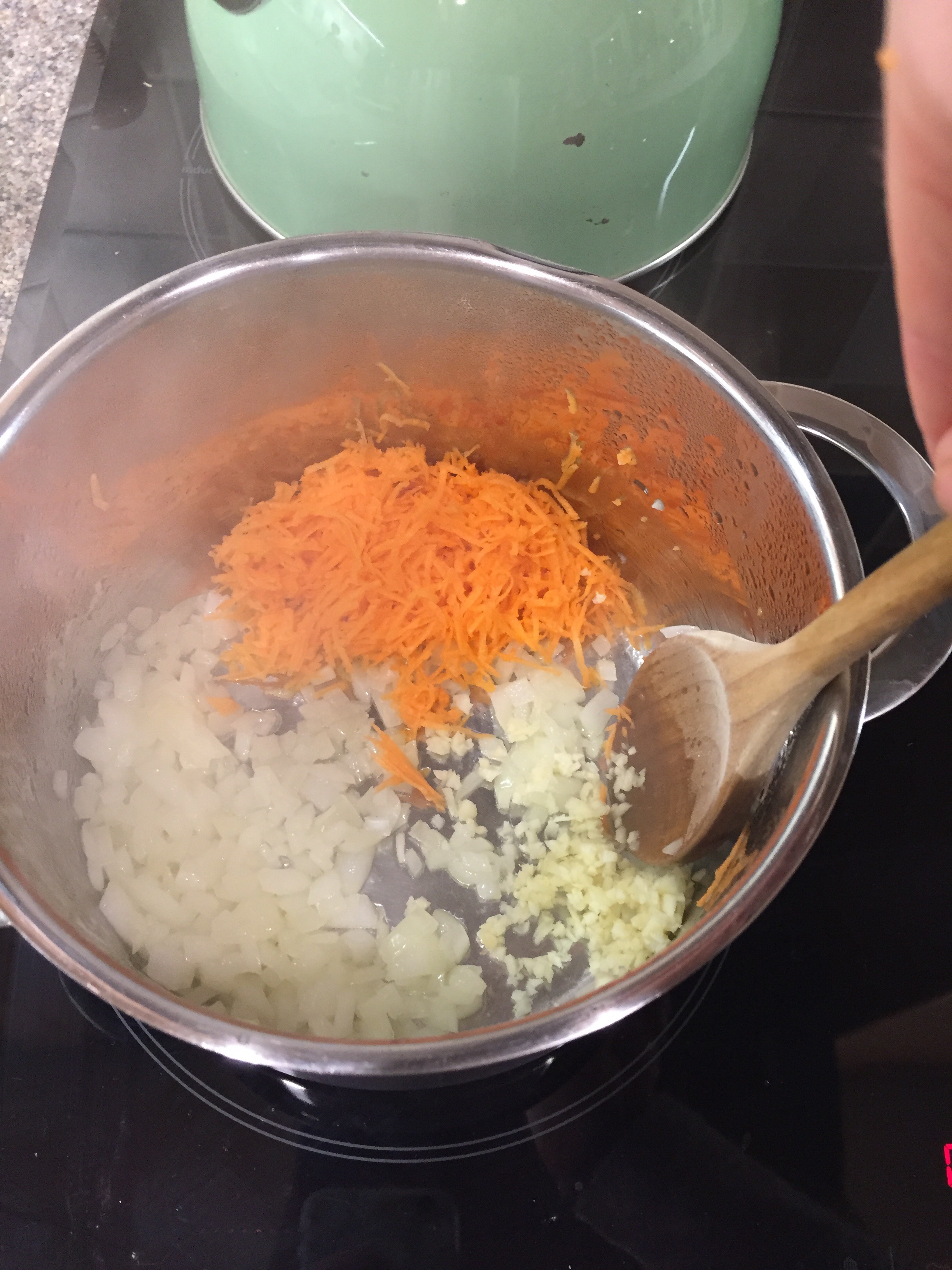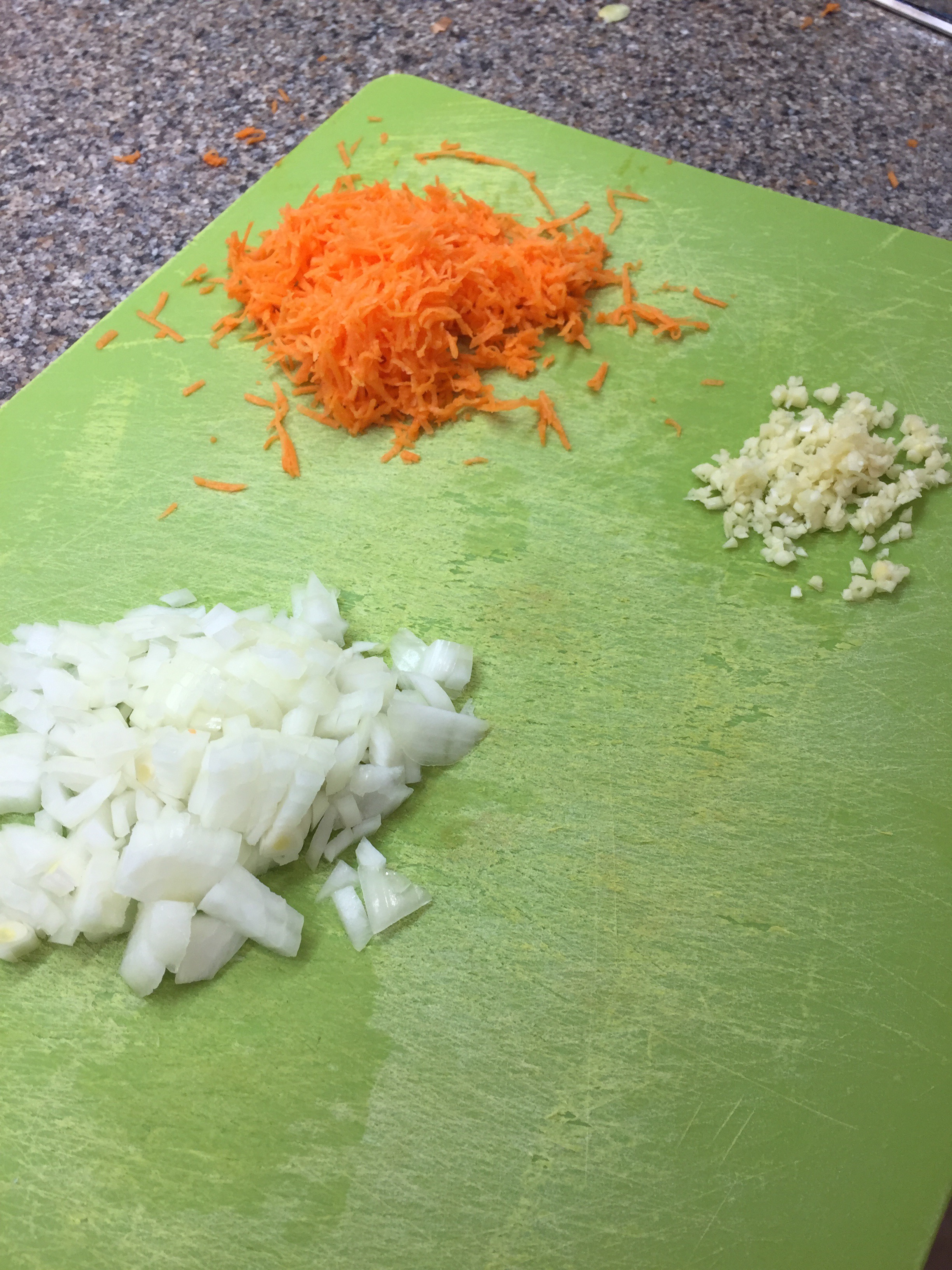 Finely dice the onion, finely chop the garlic and finely grate the carrot