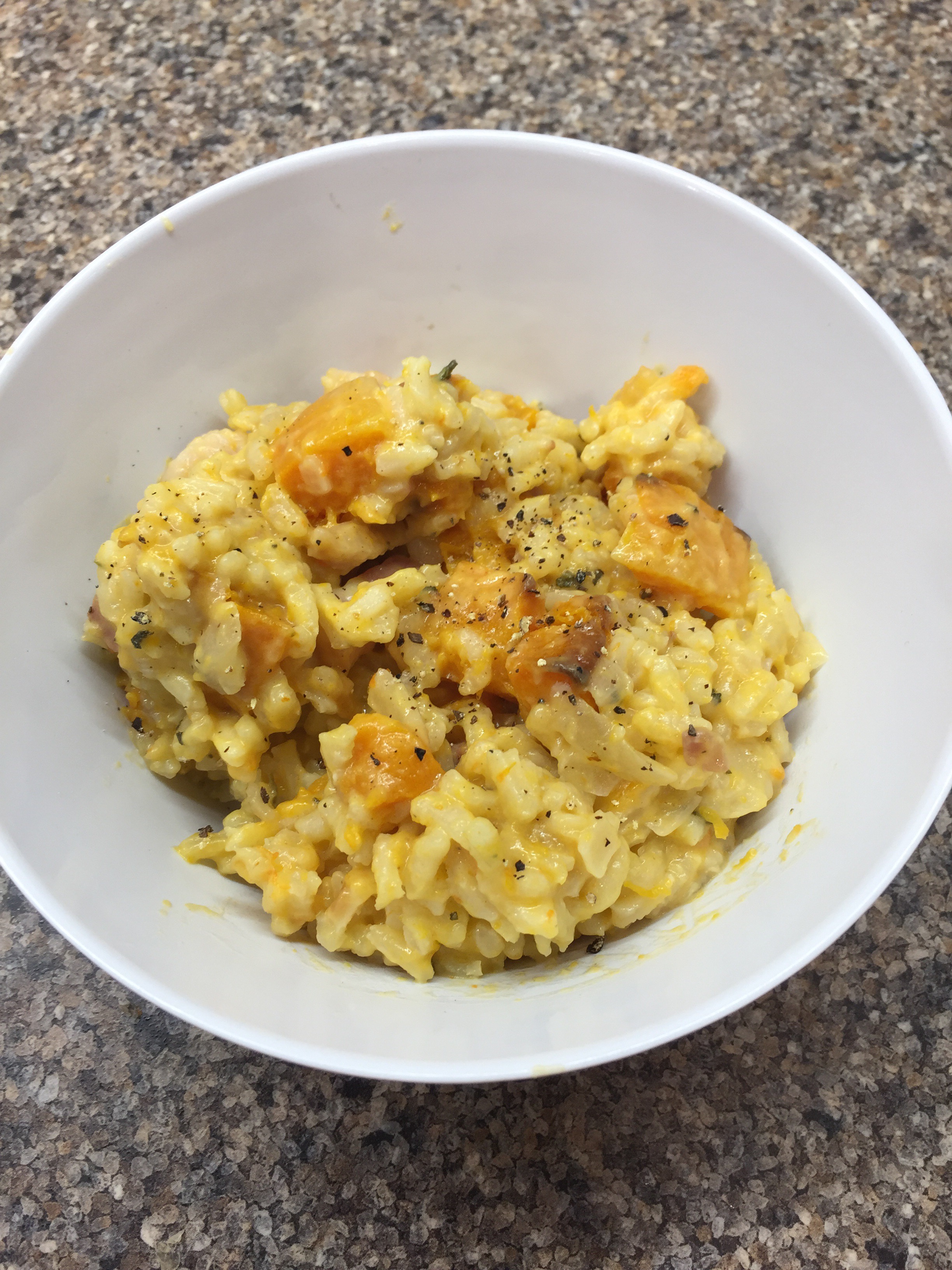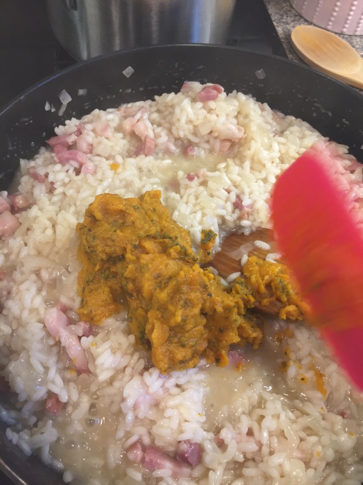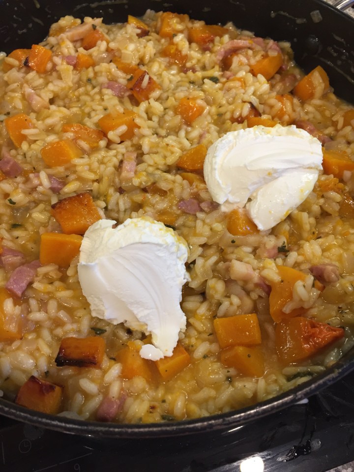 Add the rest of the butternut squash and the mascarpone and stir through until it’s all melted in.