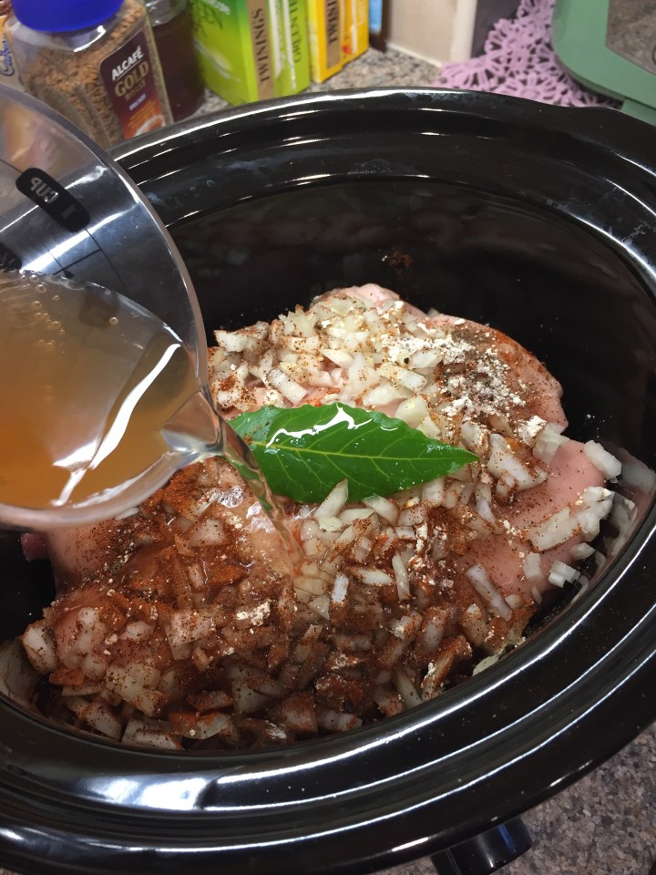 Put back into the slow cooker and mix through with the liquid then leave to cook for a further 30-60mins.