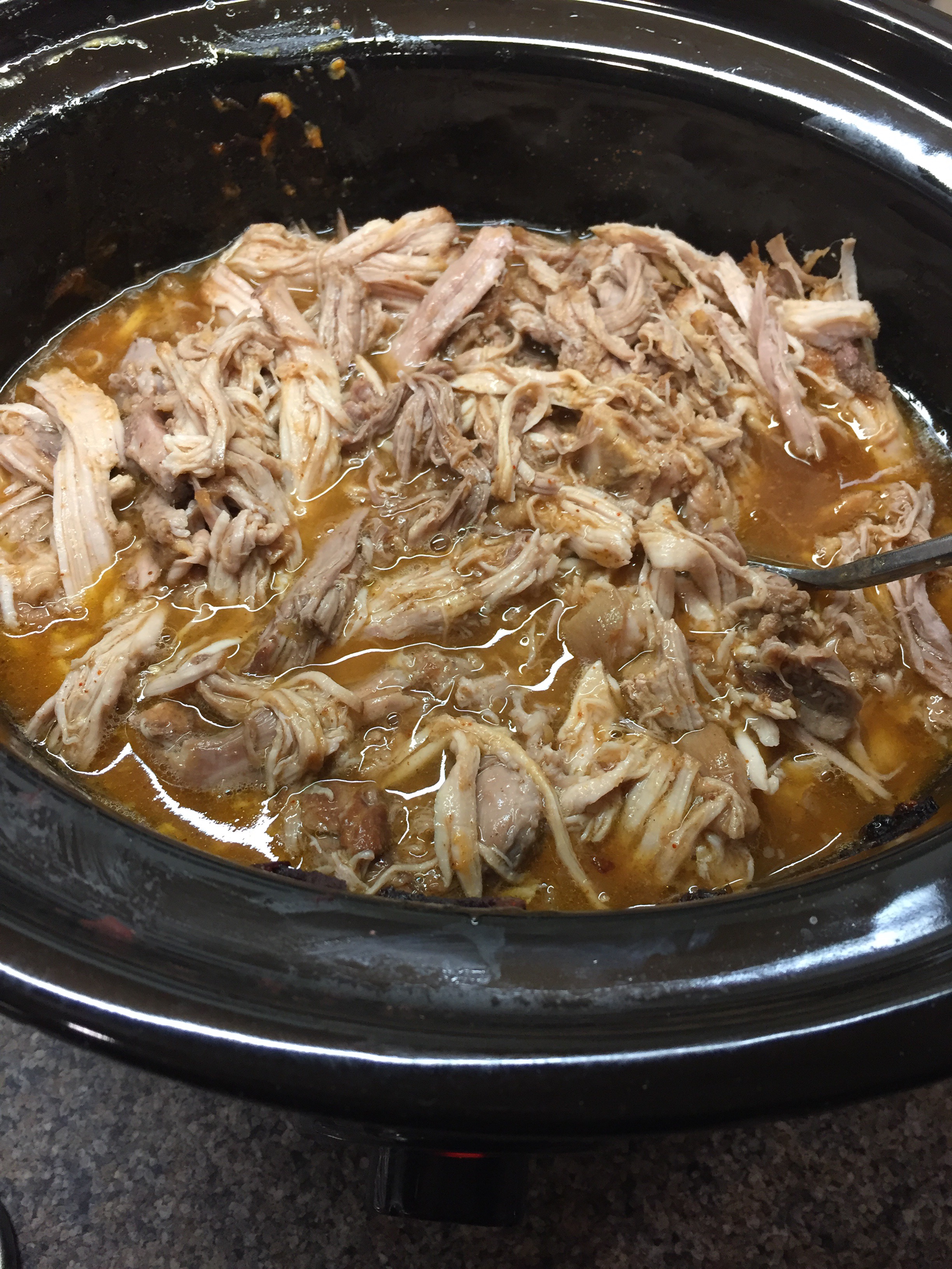 Remove the joint and use 2 forks to shred the pork into strands. Discard any large fatty parts.